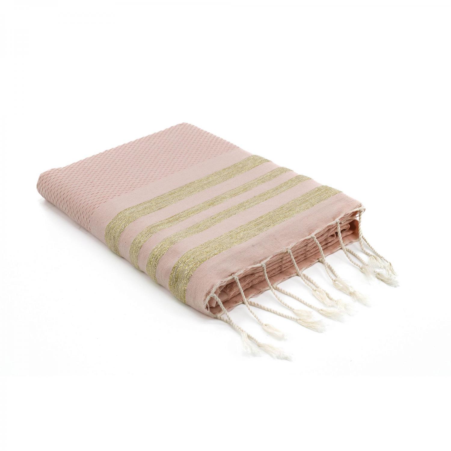 Fouta Nid d'abeille Hamptons - Lurex - Rose / Or