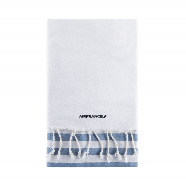 Fouta Air France Onesky - Blanc et Bleu Ciel - Broderie 10cm