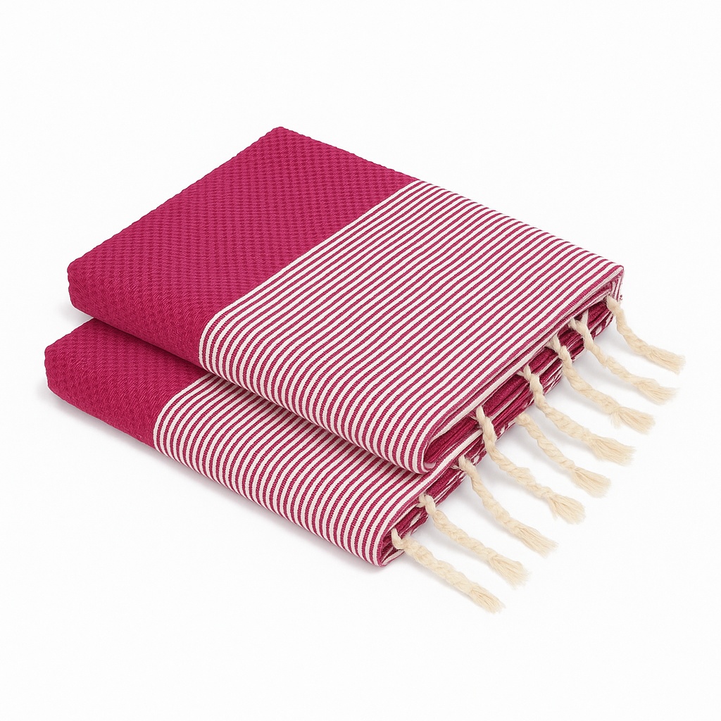 Titre : ERICIEIRA - Lot de 2 Foutas Nid d'abeille - Rose Fuschia 200x100