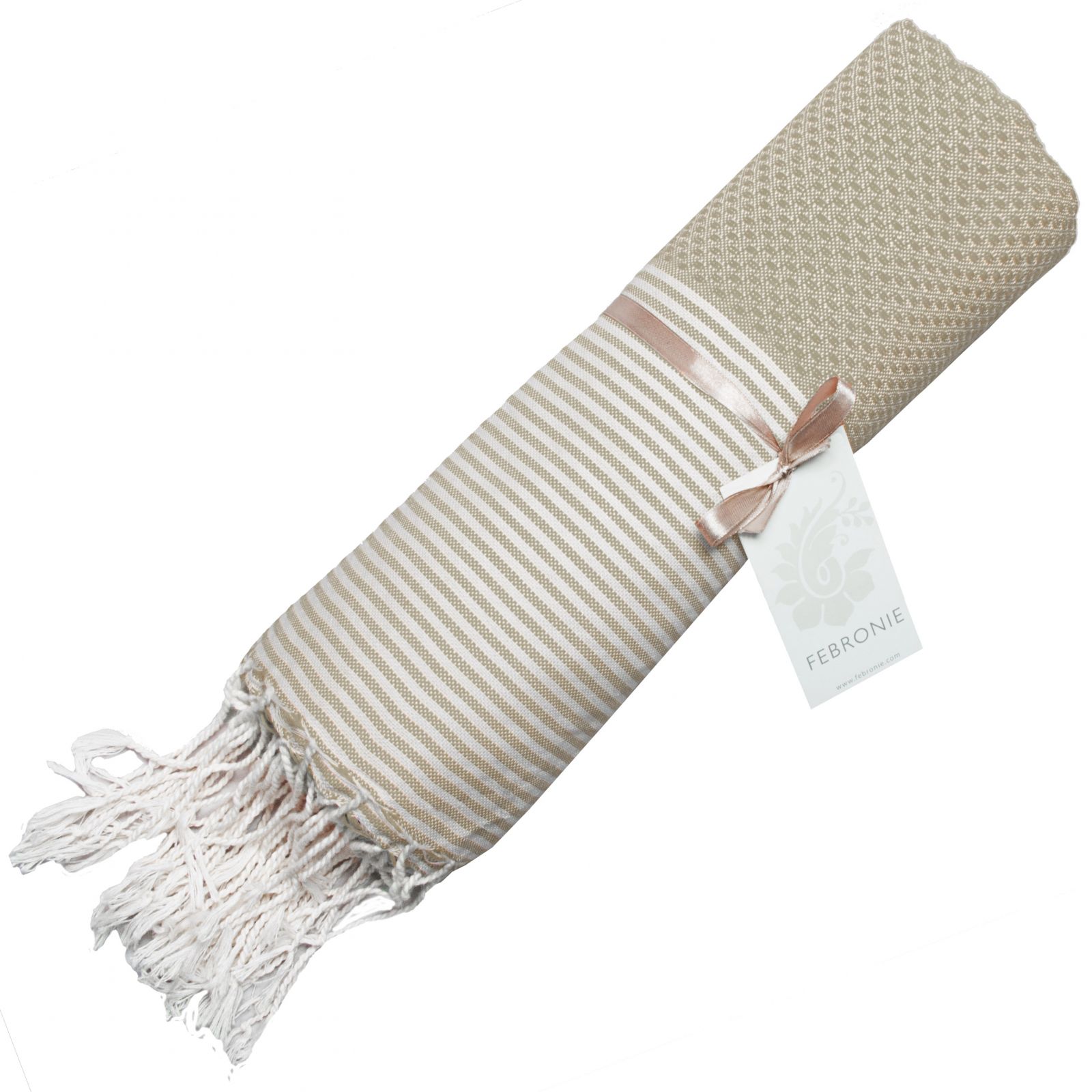Fouta Nid d'abeille Ibiza - Rayure fine - Taupe Clair