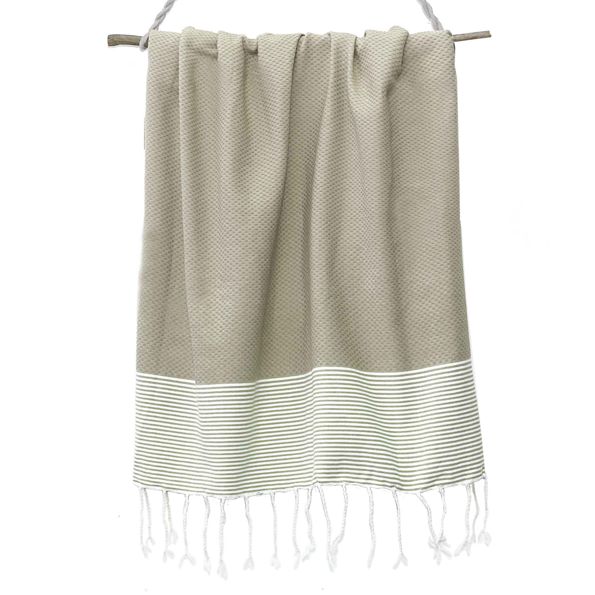Titre : Fouta Nid d'abeille Ibiza - Rayure fine - Taupe Clair
