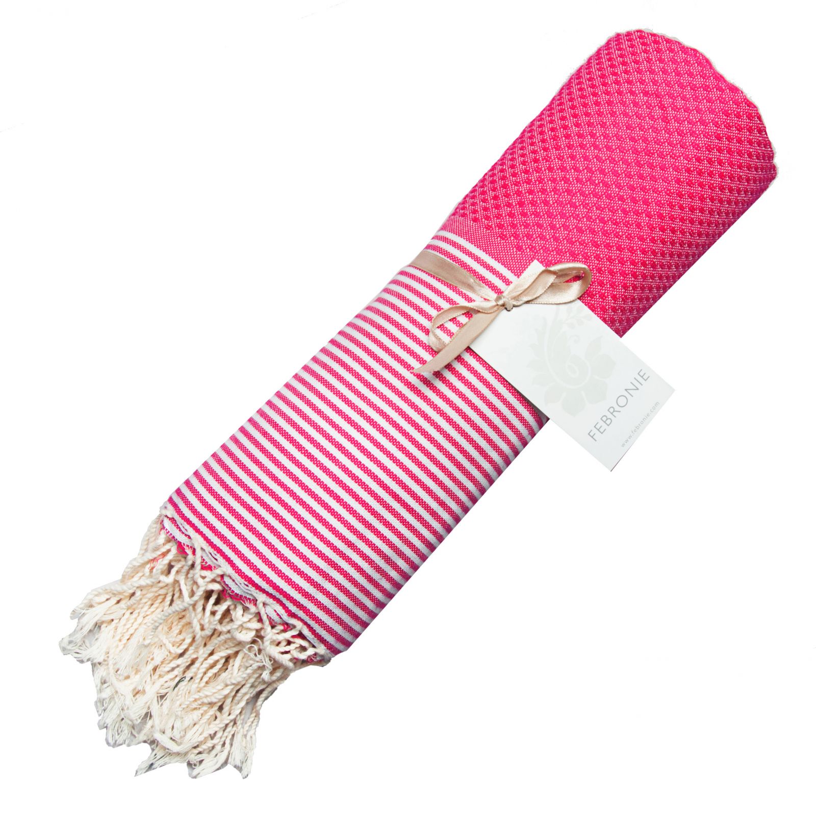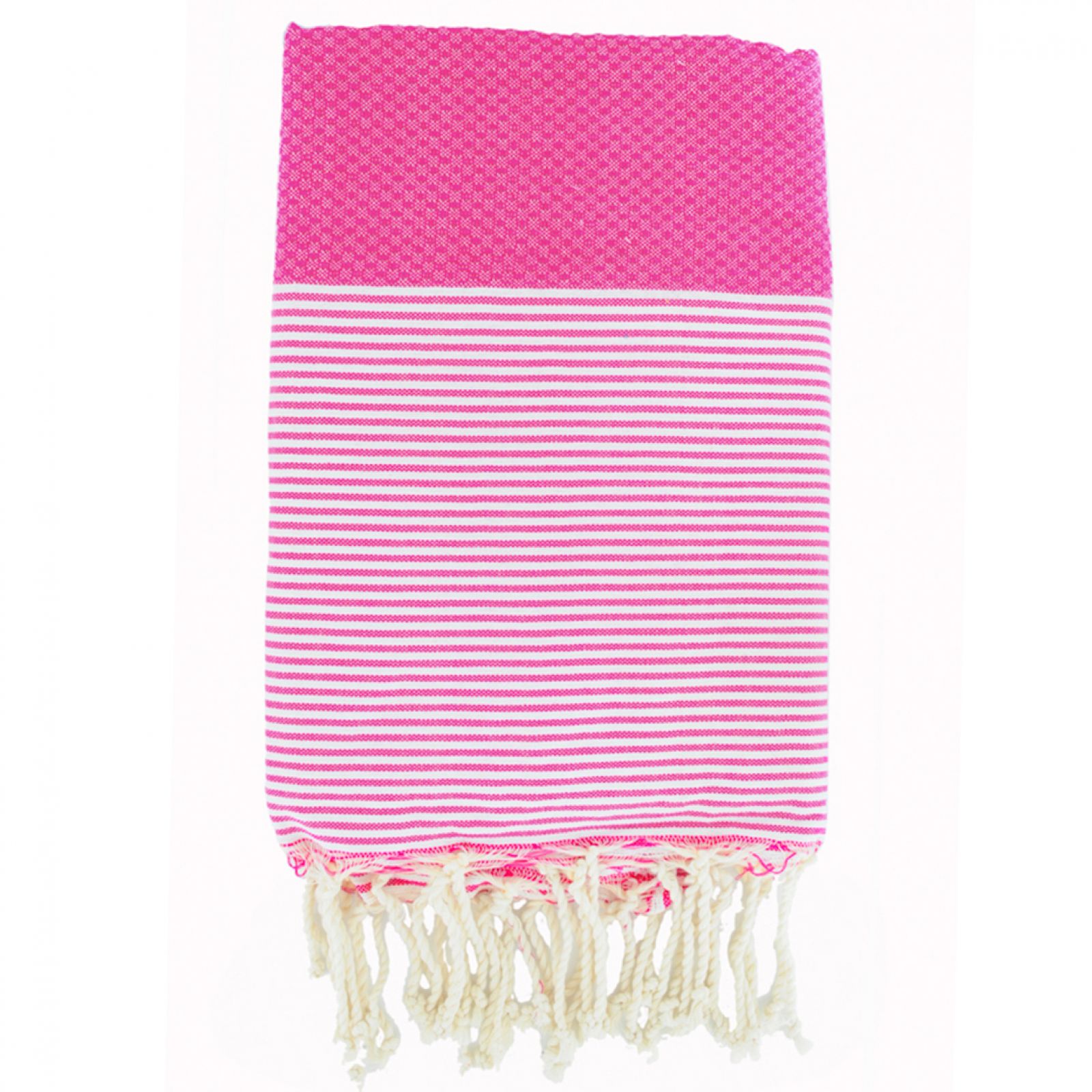 Titre : Fouta Nid d'abeille Ibiza - Rayure fine - Rose Fuschia