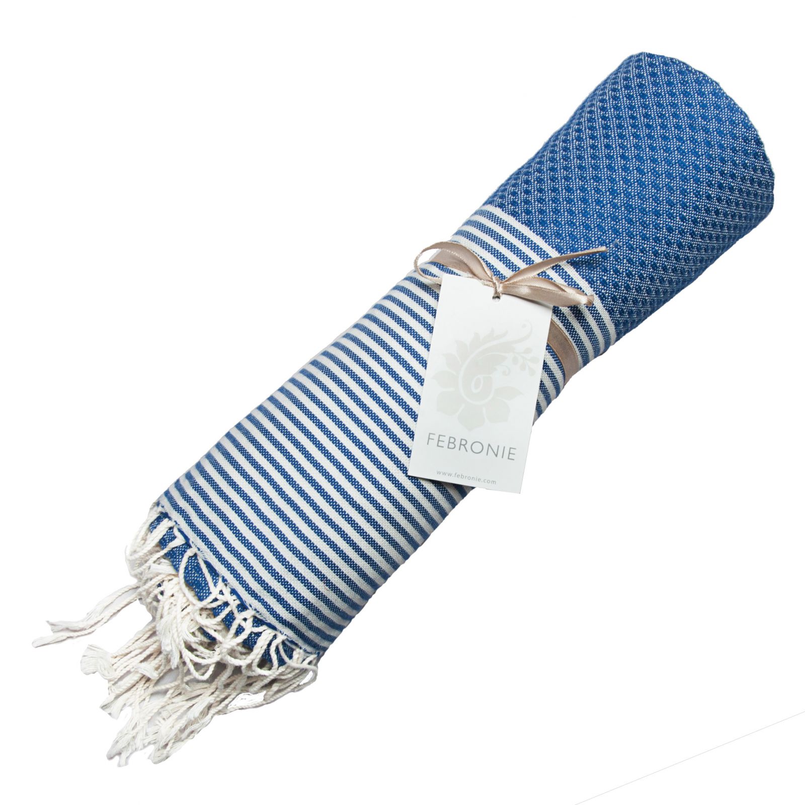 Titre : Fouta Nid d'abeille Ibiza - Rayure fine - Bleu Grec