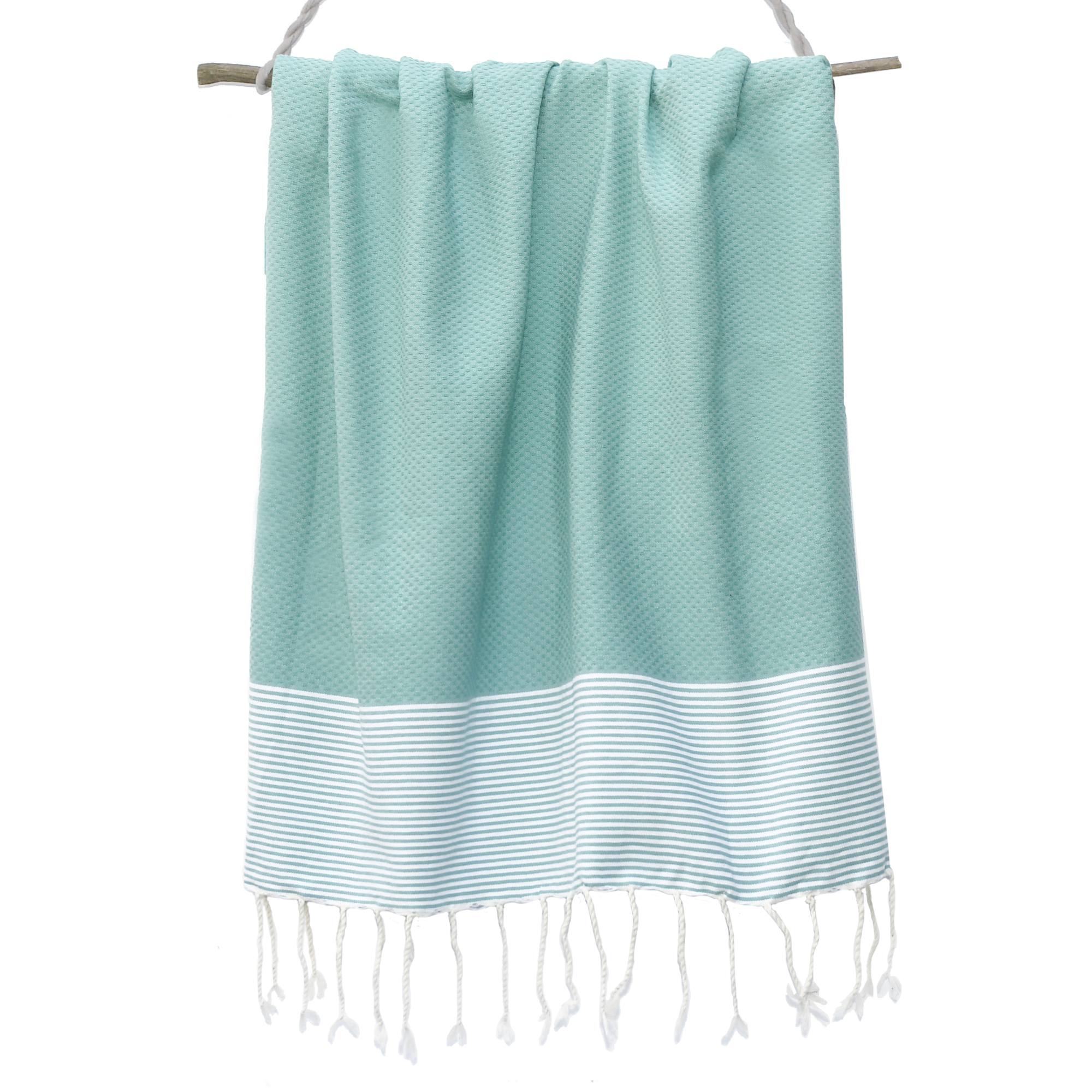 Titre : Fouta Nid d'abeille Ibiza - Rayure fine - Vert Turquoise