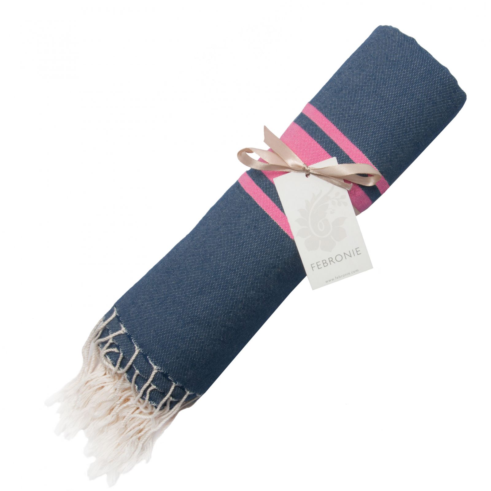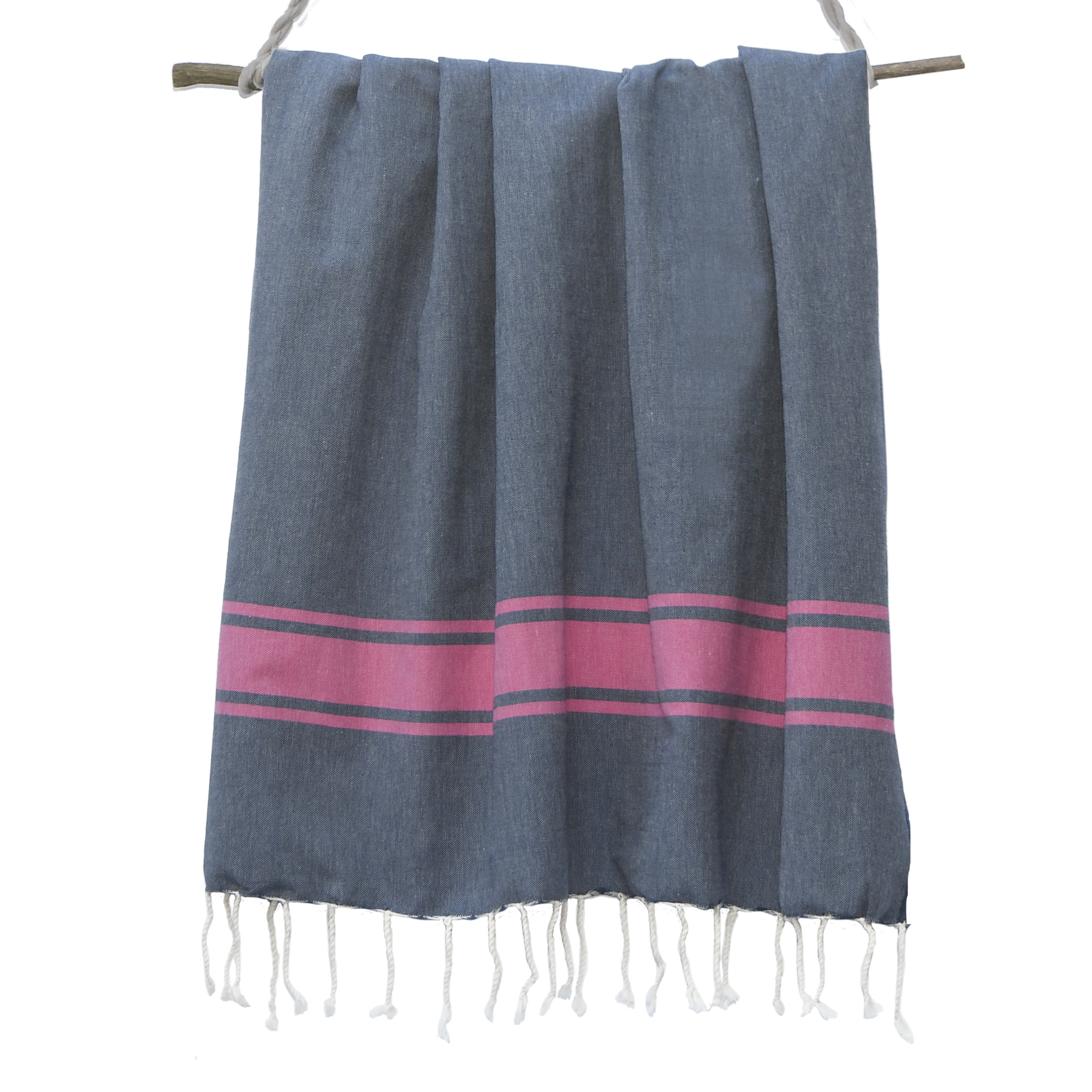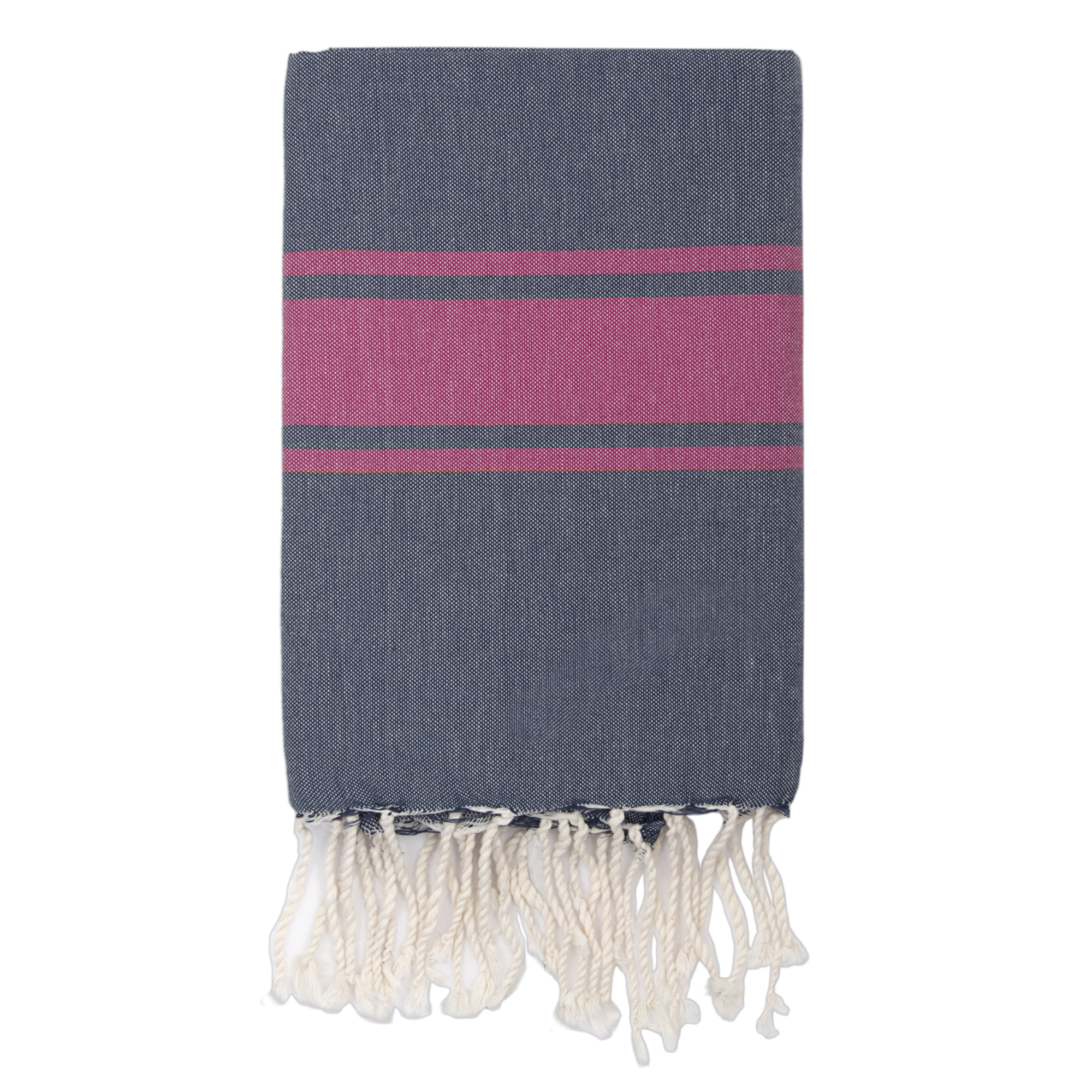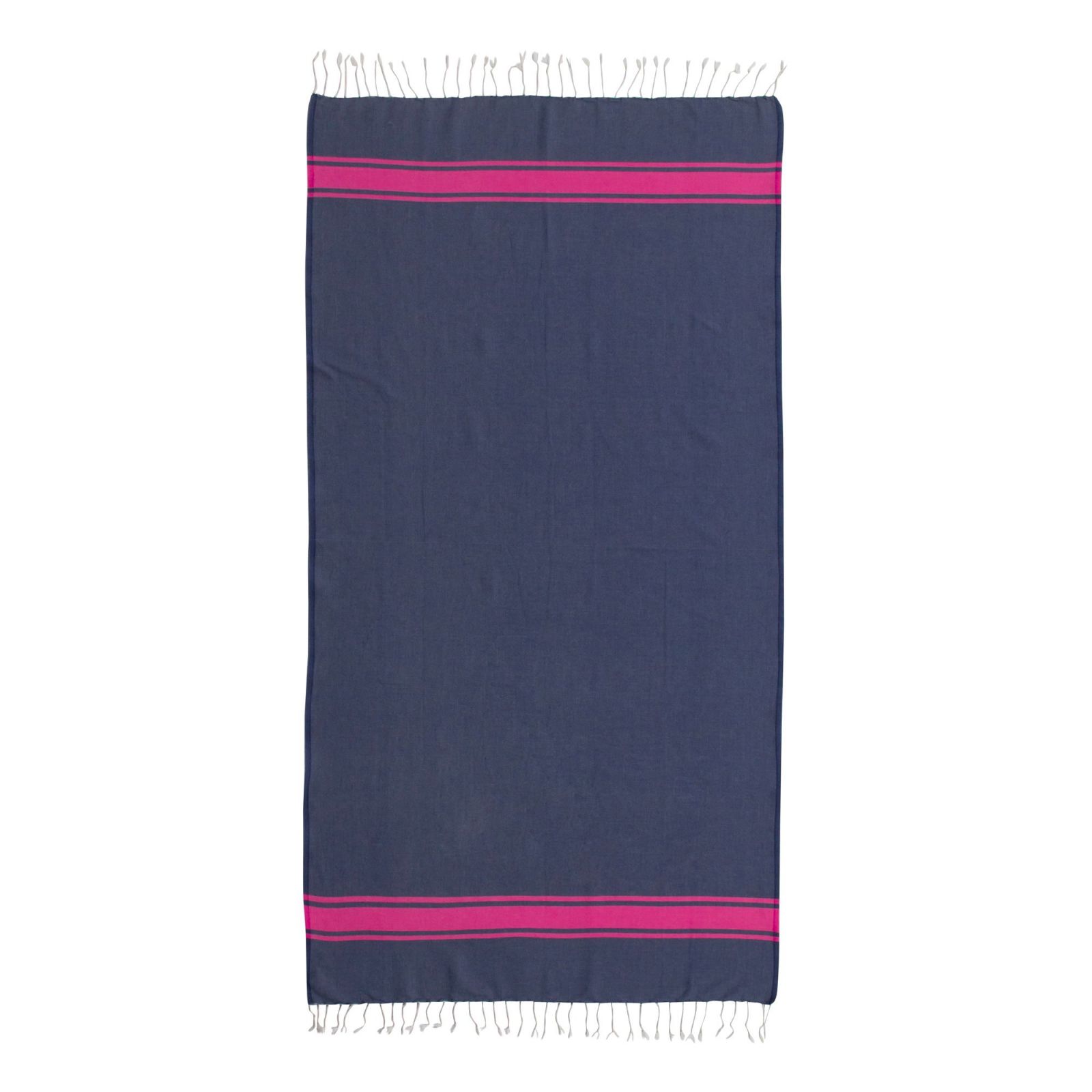Traditional Fouta Bicolore - St Tropez Denim Blue - Classic Stripe - Fuschia Pink