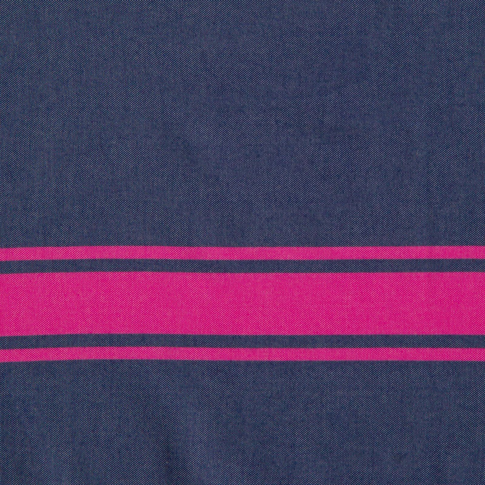 Titre : Fouta Traditionelle Bi-color St Tropez Bleu Jean - Rayure Classique - Rose Fuschia