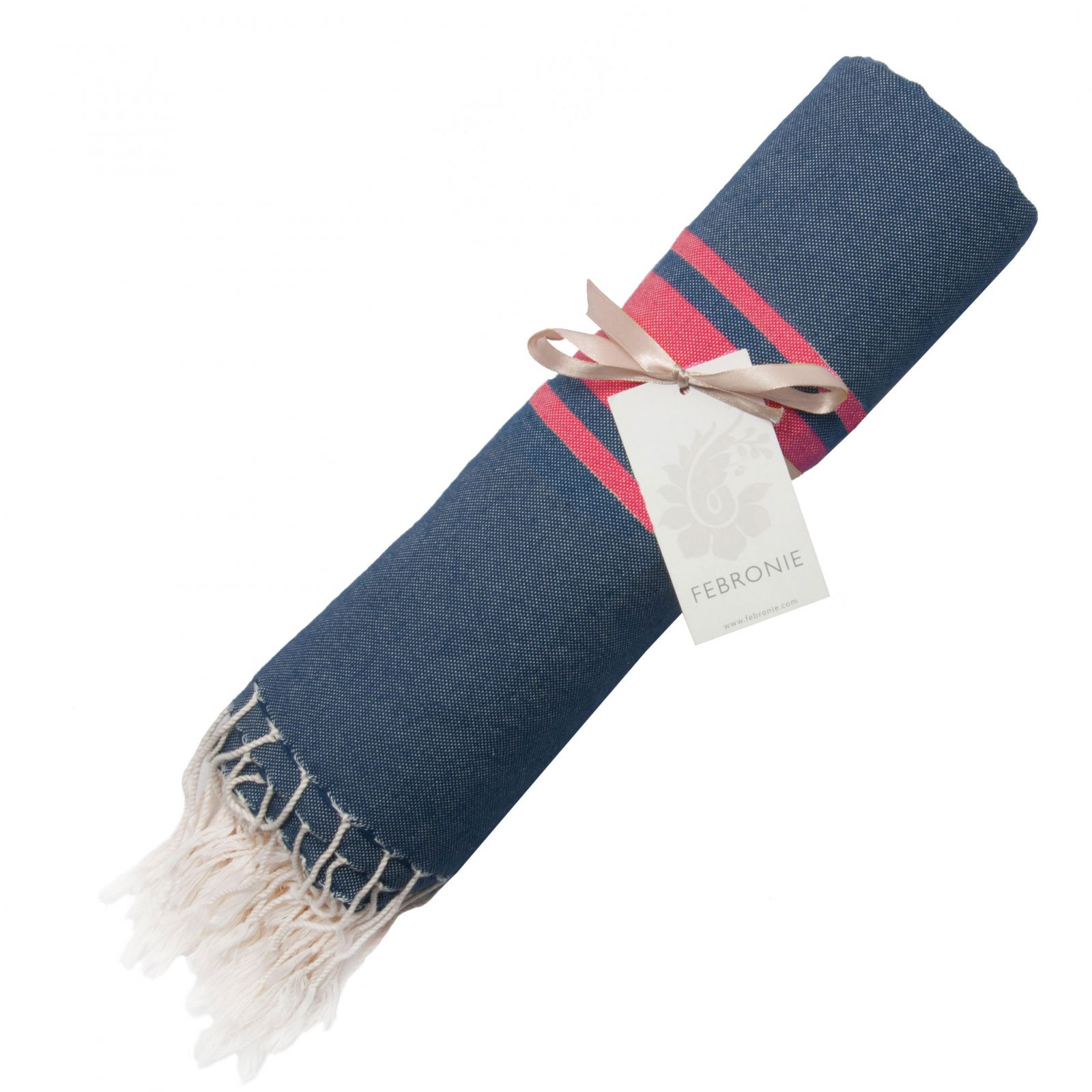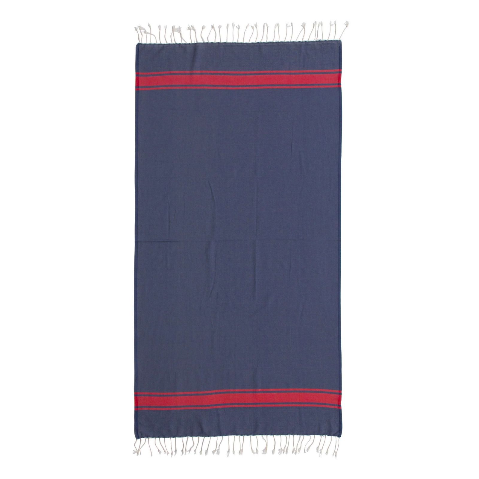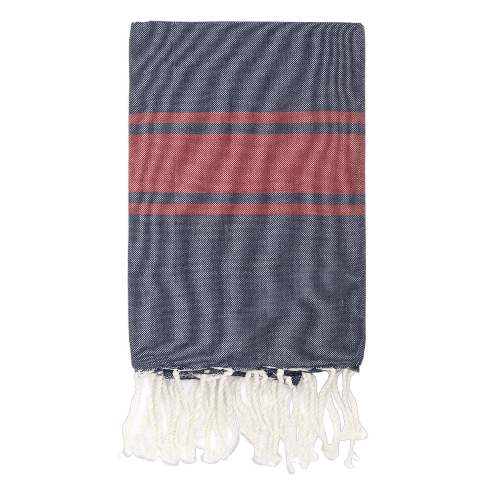 Traditional Fouta Bicolore - St Tropez Denim Blue - Classic Stripe Red