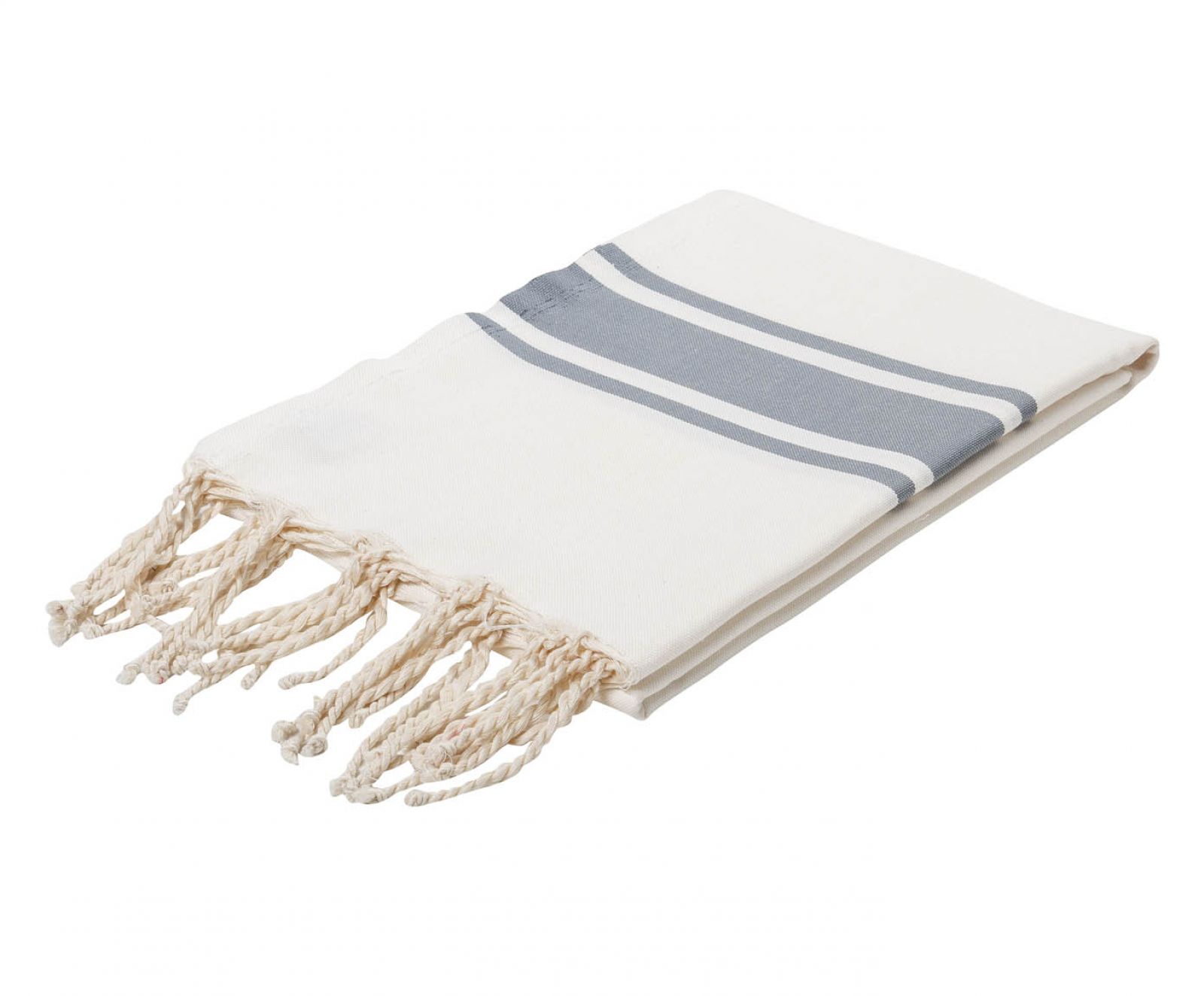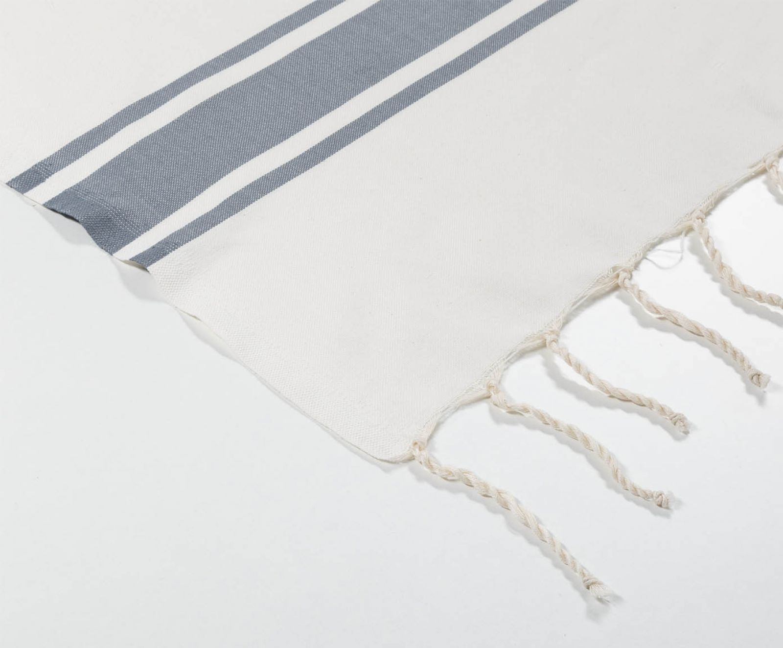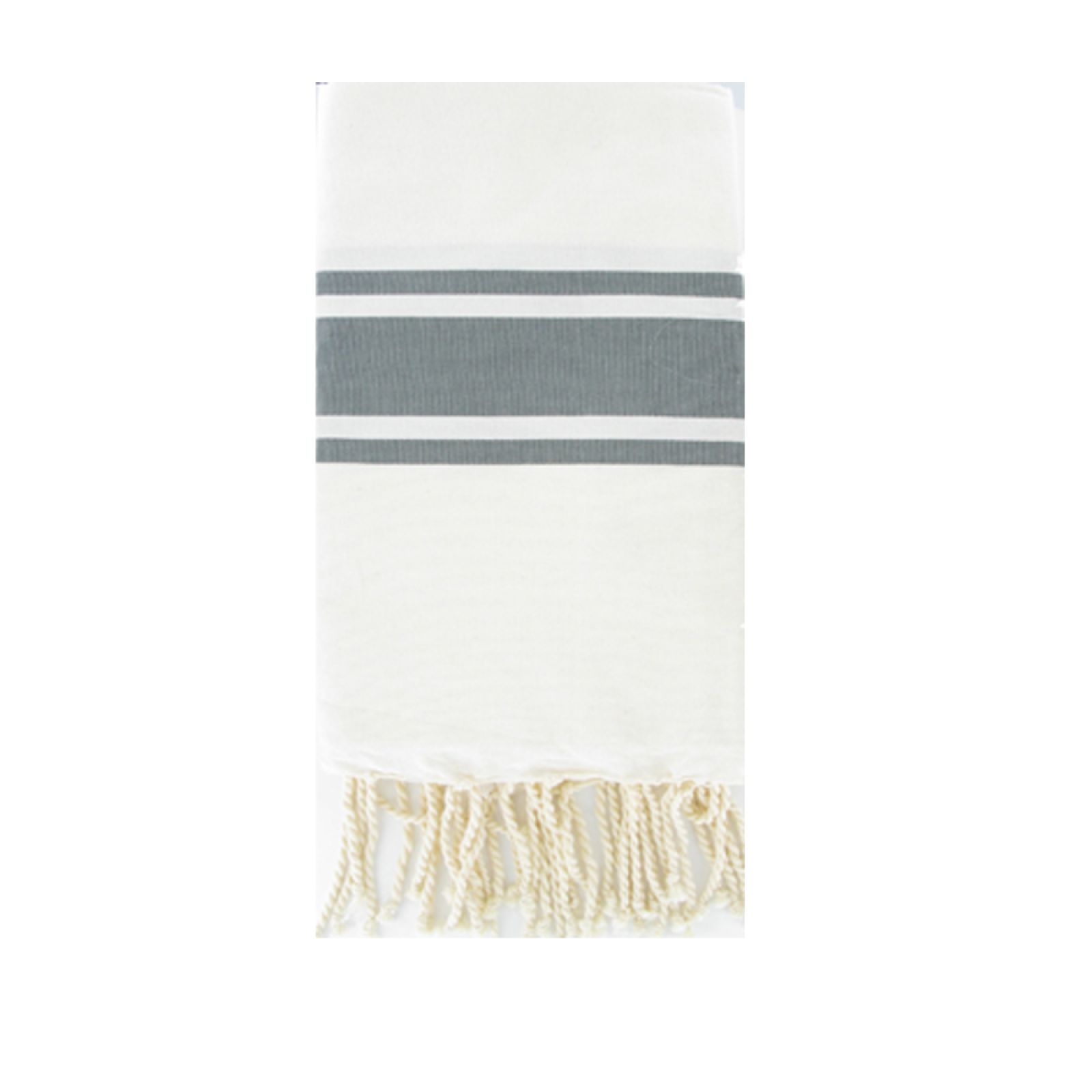 Titre : Fouta Traditionelle Unie St Tropez - Rayure Classique - Blanc / Gris Moyen