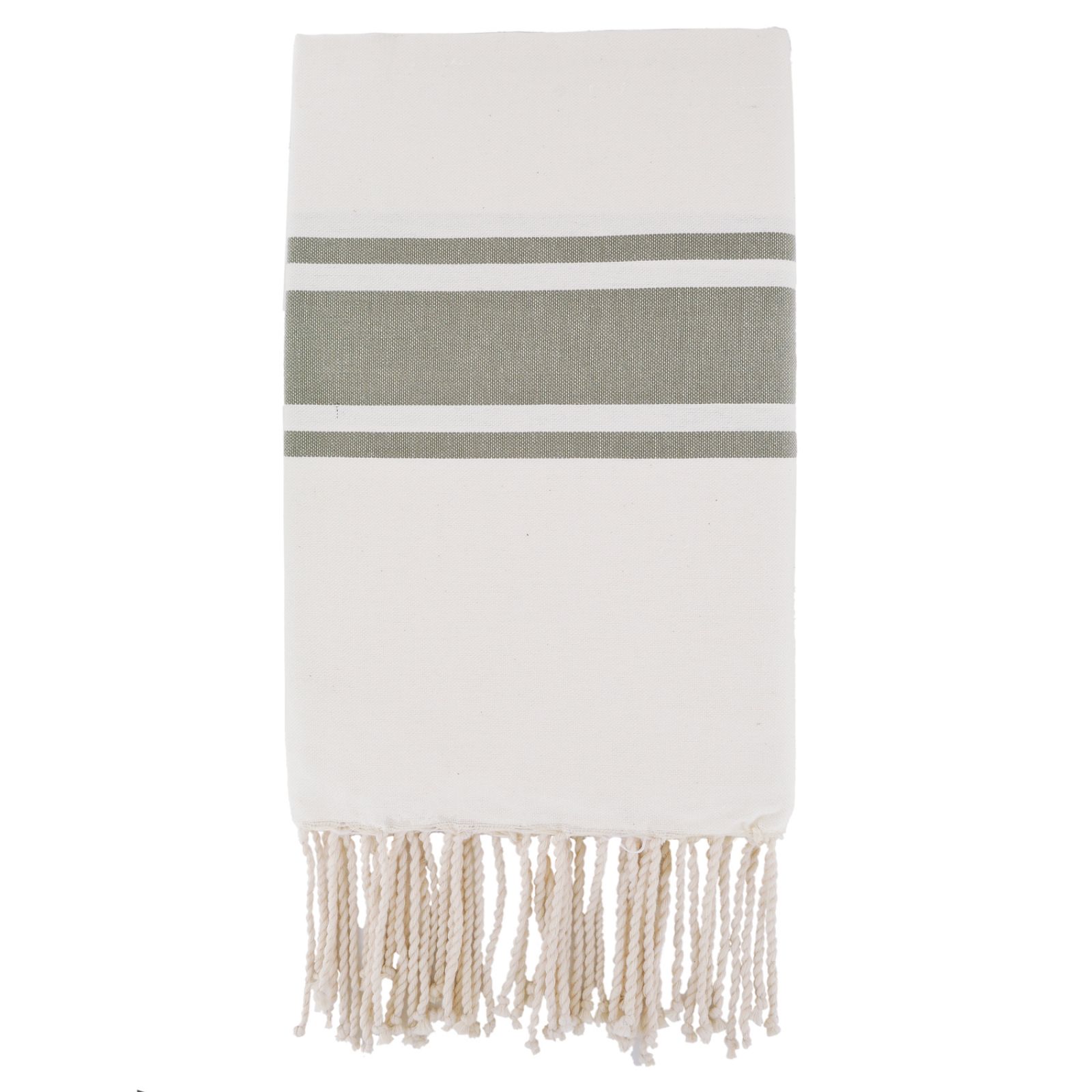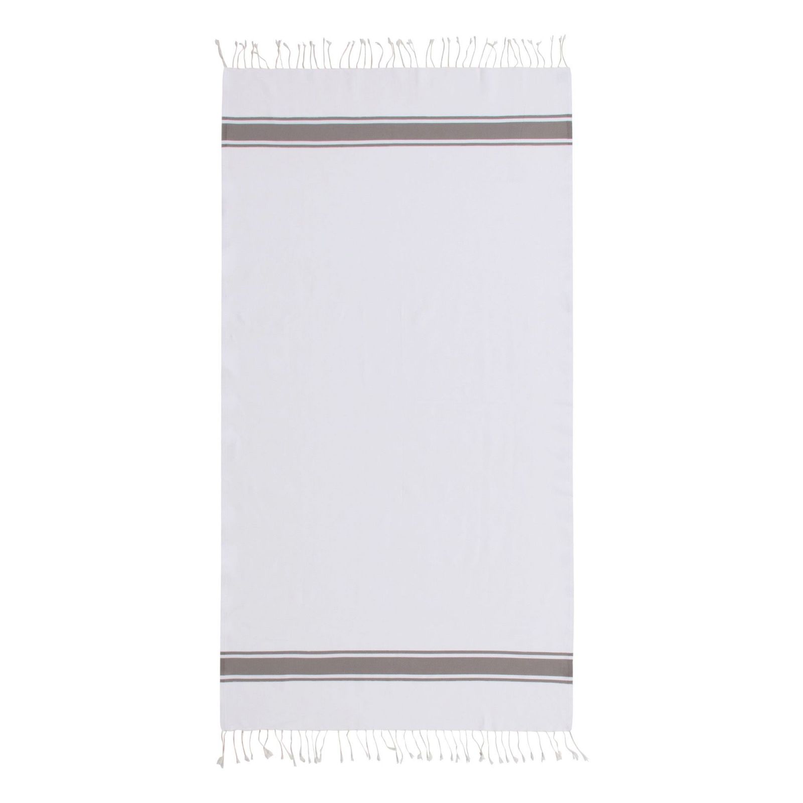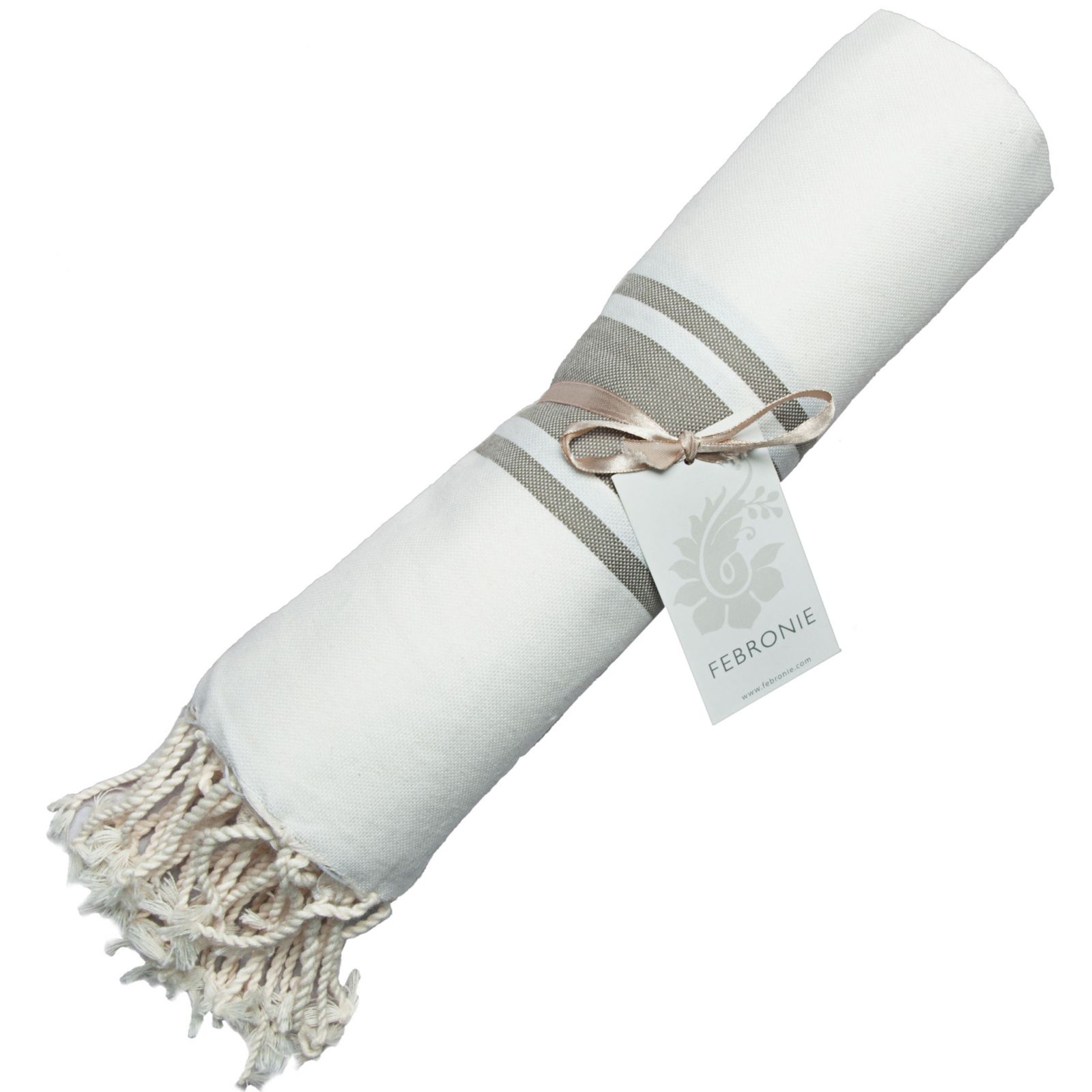 Titre : Fouta Traditionelle Unie St Tropez - Rayure Classique Blanc / Taupe Clair