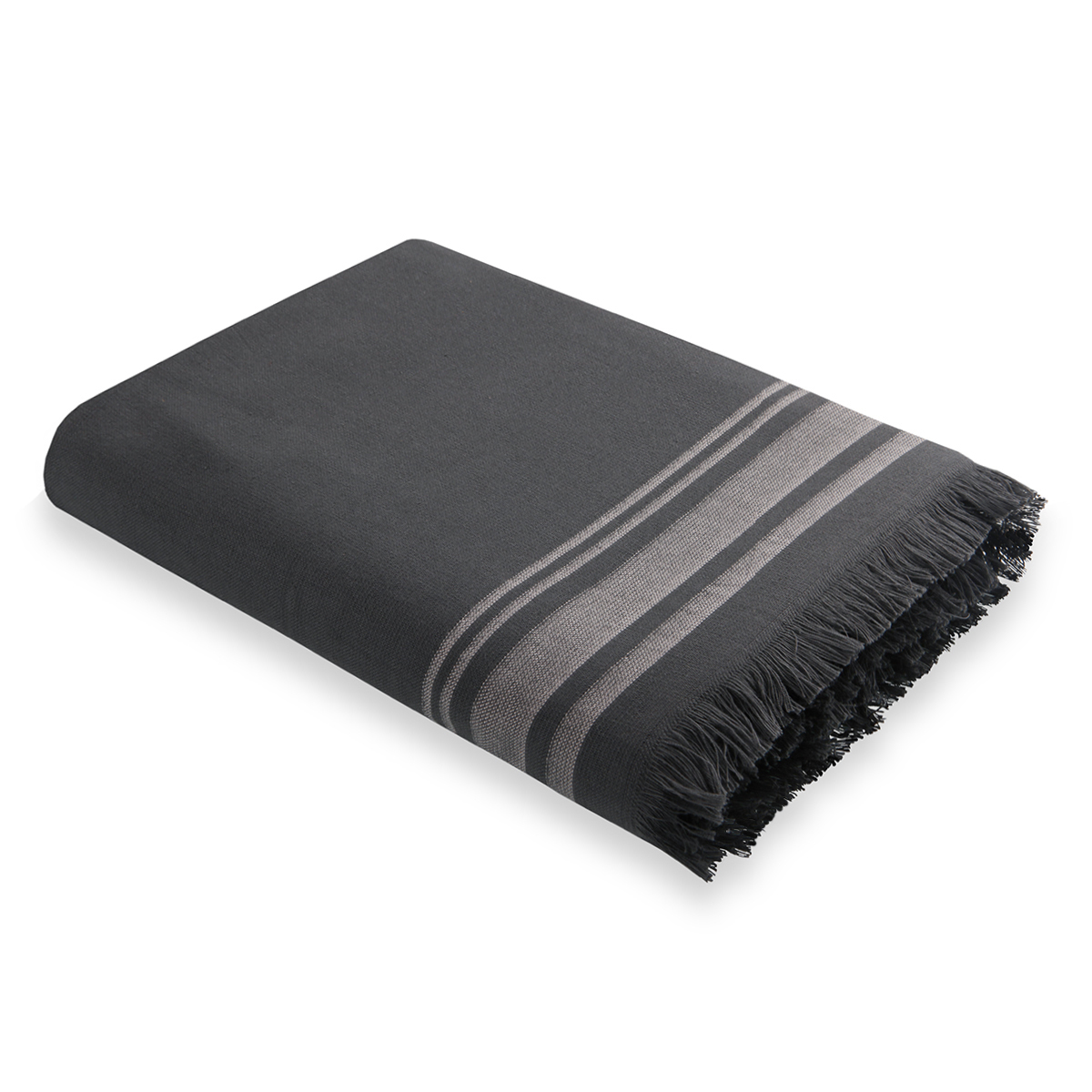 Fouta éponge gris ardoise bande grège FARO 100x180