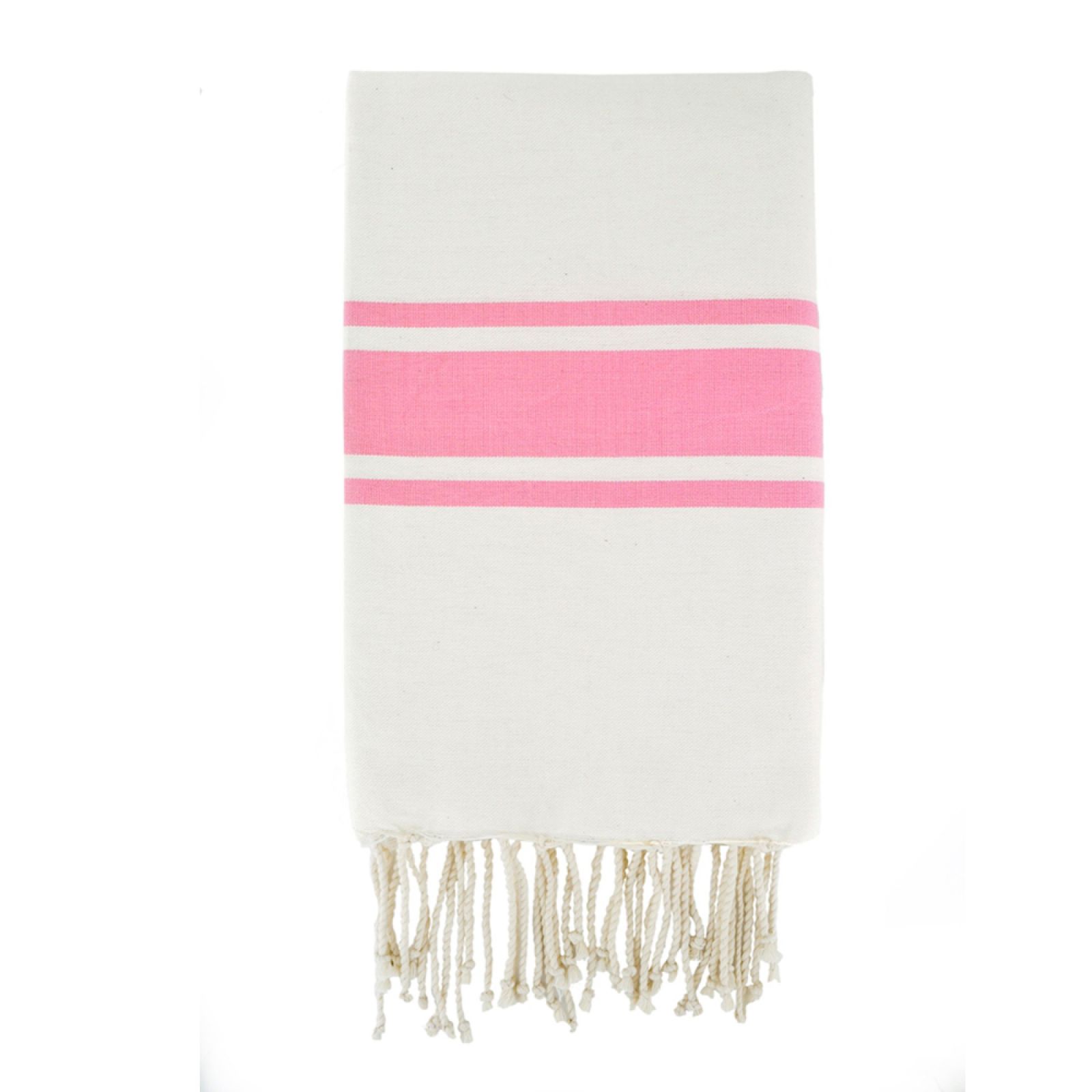 Traditional Fouta St Tropez - Classic Stripe - White/ Pale Pink