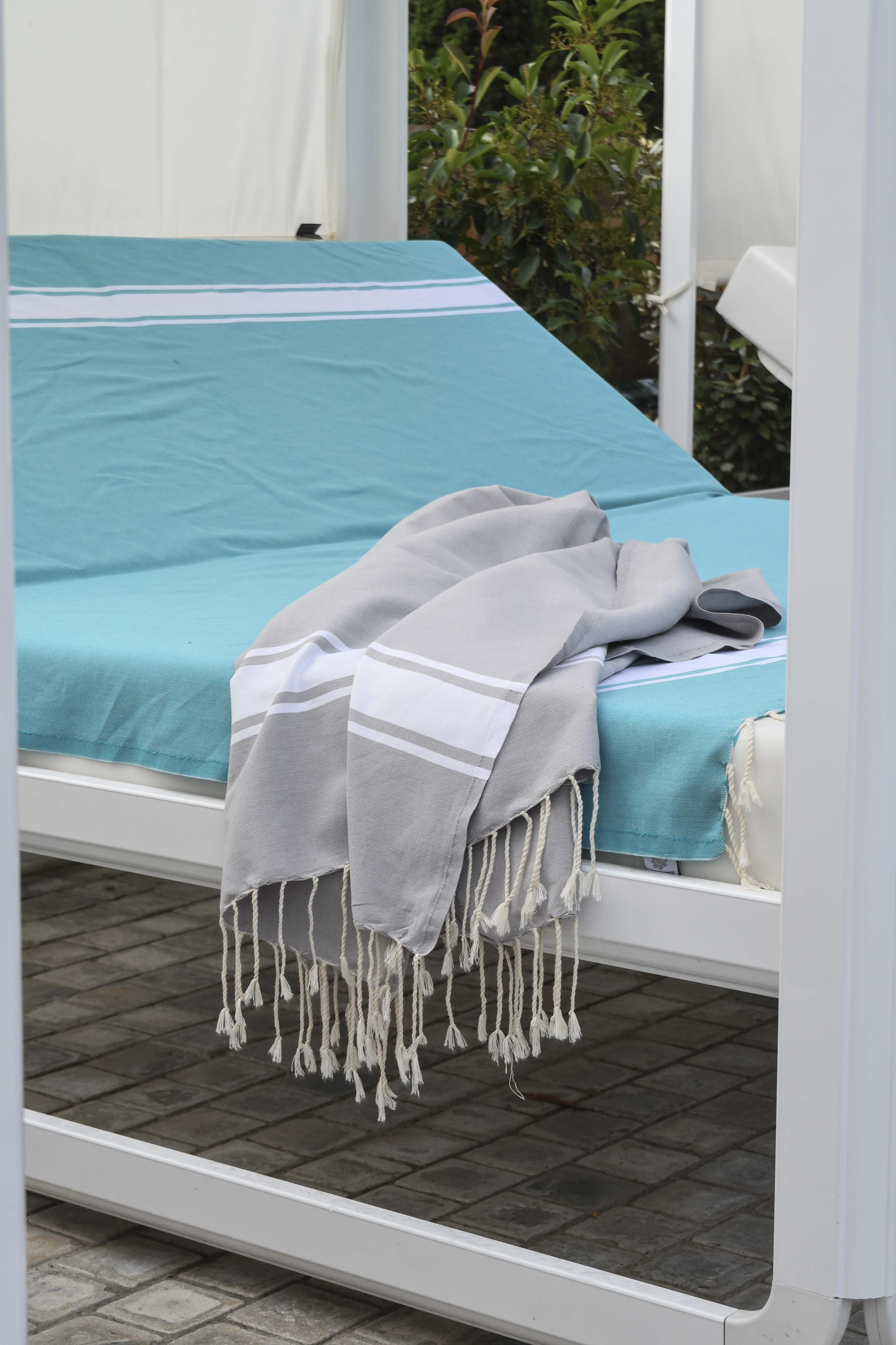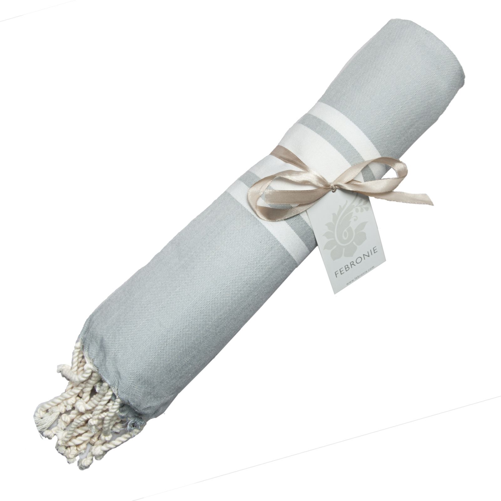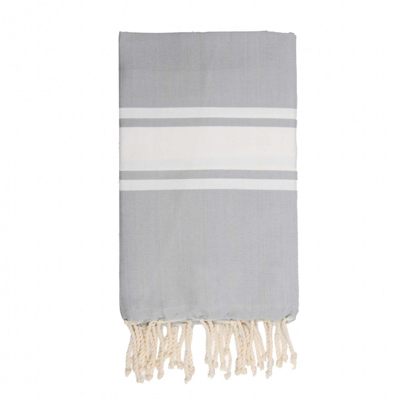 Titre : Fouta Traditionelle Unie St Tropez - Rayure Classique - Gris Perle