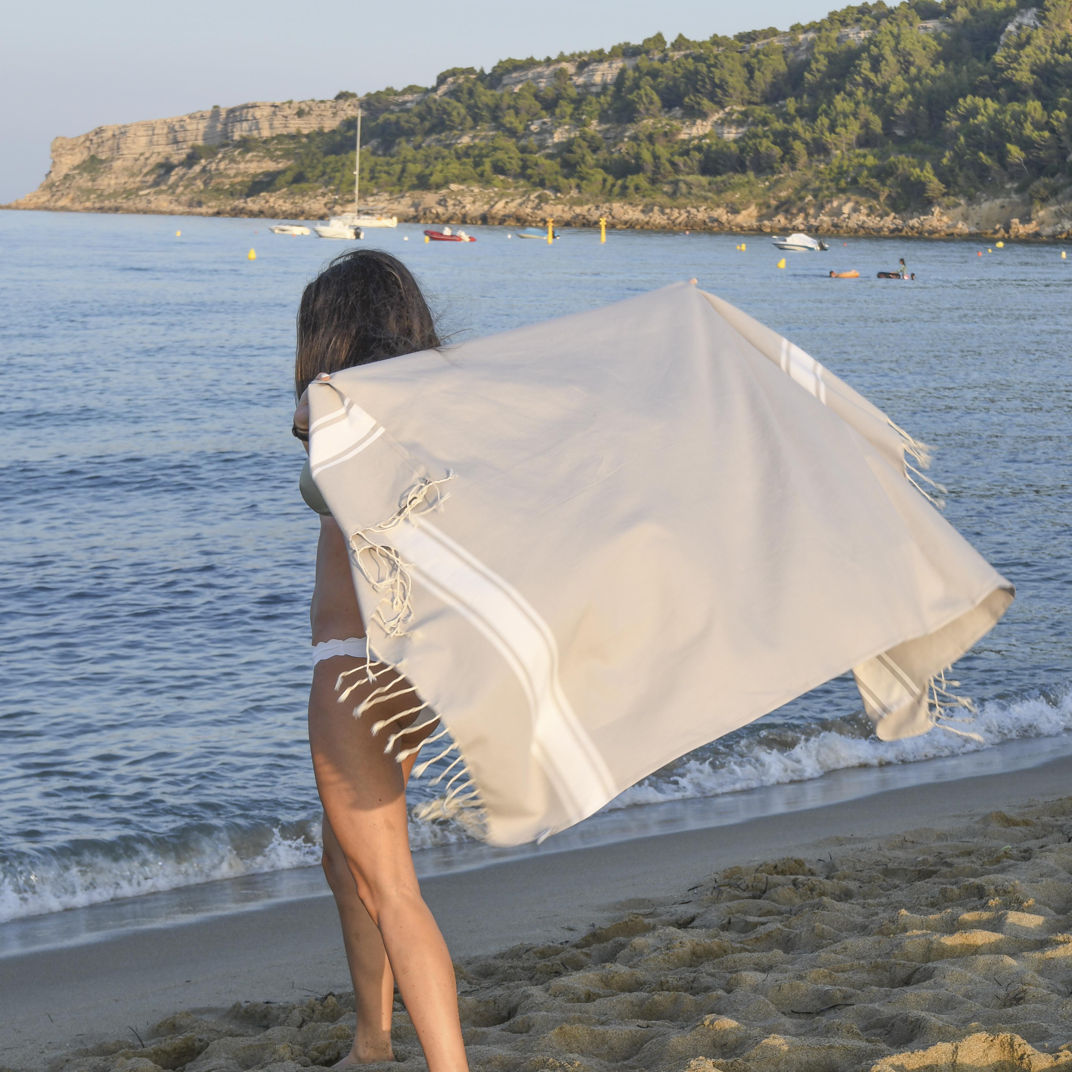 Hand-woven by craftsmen from southern Tunisia using 100% natural materials, our Best Seller - the traditional Fouta "SAINT TROPEZ" - combines lightness with incredible absorption capacity. Elegant, light and easy to maintain, its wide range of colors and the quality of its weaving allow many different uses. In addition to being the versatile accessory of our summers; beach or bath towels, sarong, scarves, throw it has become an essential object of decoration of our interiors and exteriors; draped on the back of a chair, neatly folded at the end of the bed .... it instantly brings chic and elegance to your home.