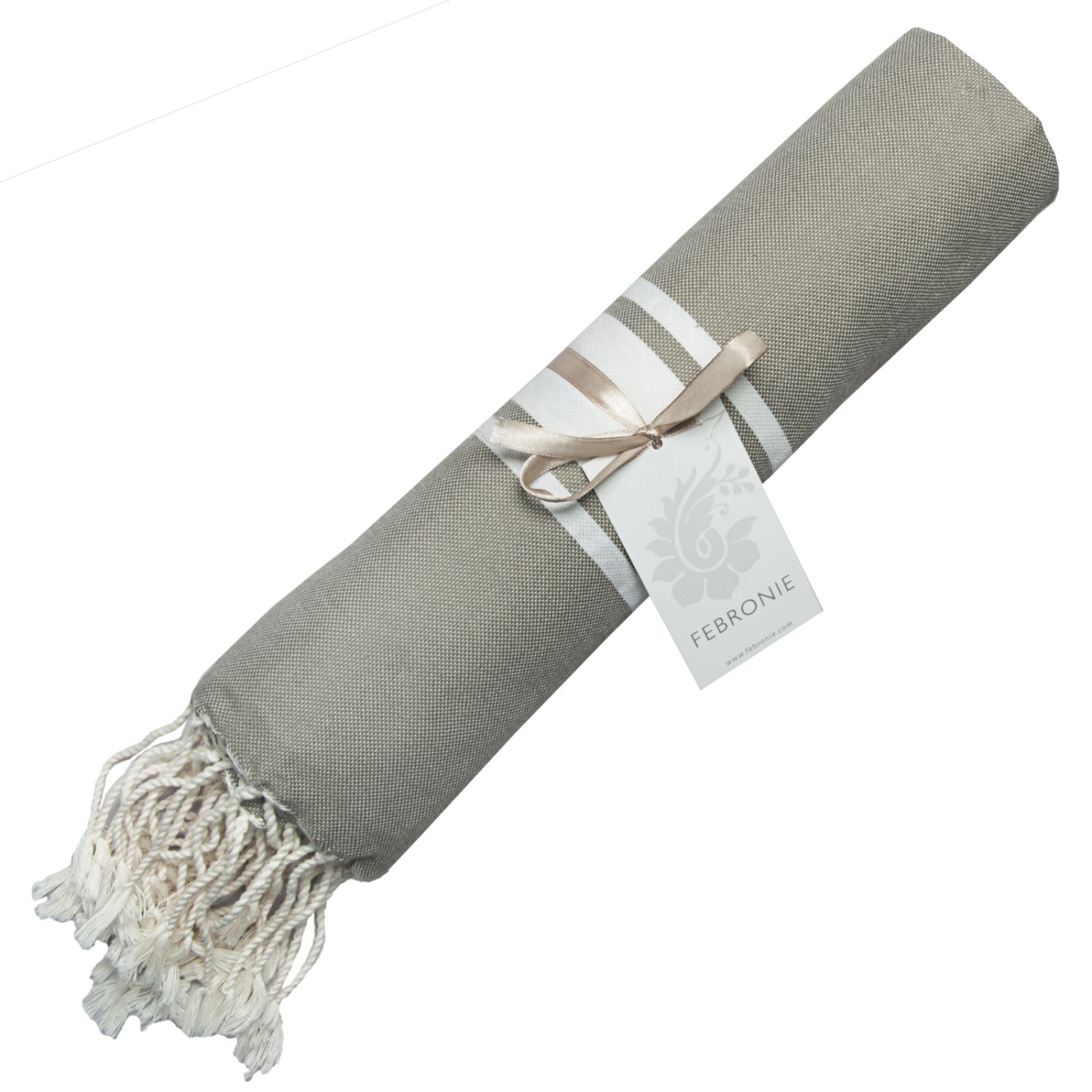 Fouta Traditionelle Unie St Tropez - Rayure Classique - Taupe Clair