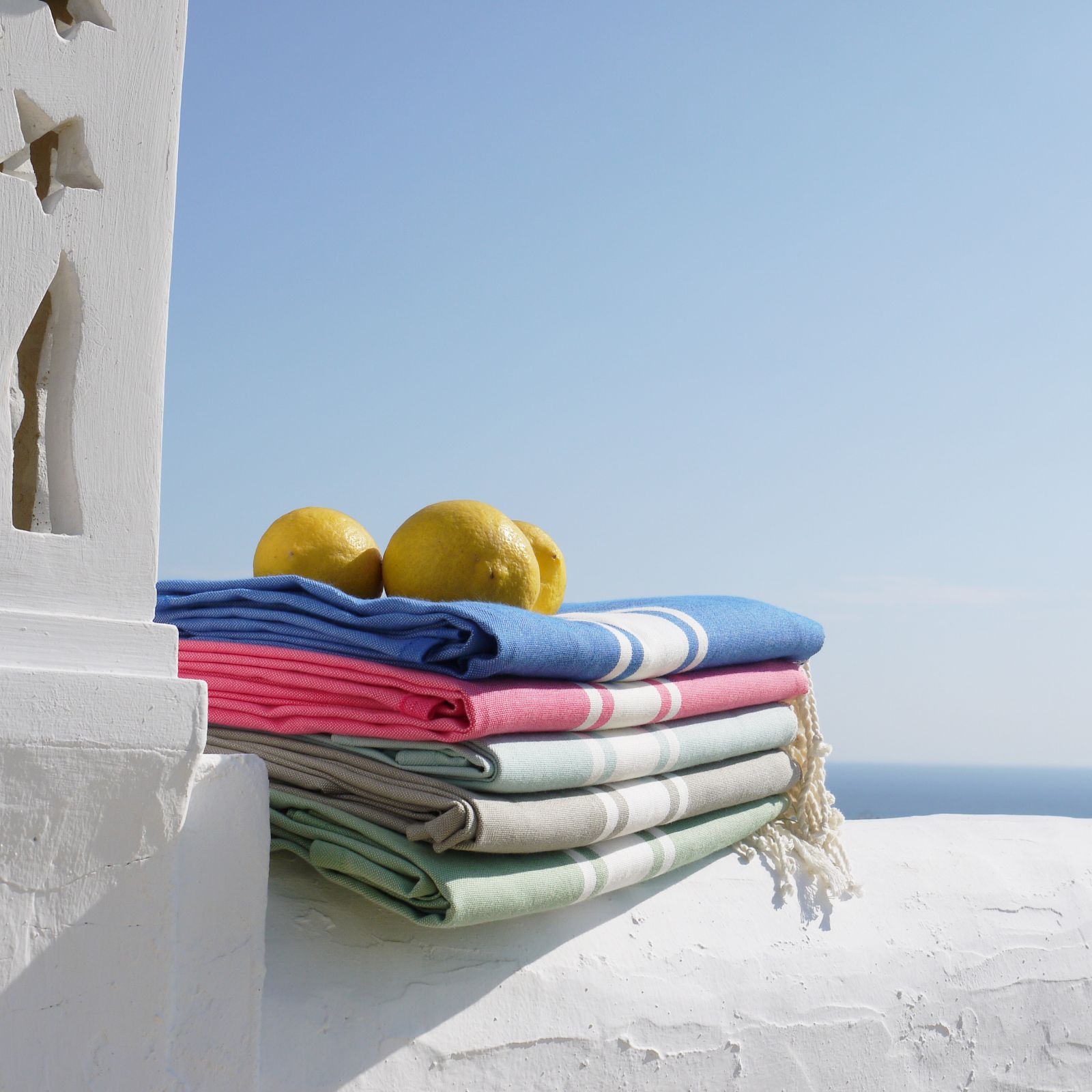 Hand-woven by craftsmen from southern Tunisia using 100% natural materials, our Best Seller - the traditional Fouta "SAINT TROPEZ" - combines lightness with incredible absorption capacity. Elegant, light and easy to maintain, its wide range of colors and the quality of its weaving allow many different uses. In addition to being the versatile accessory of our summers; beach or bath towels, sarong, scarves, throw it has become an essential object of decoration of our interiors and exteriors; draped on the back of a chair, neatly folded at the end of the bed .... it instantly brings chic and elegance to your home.
