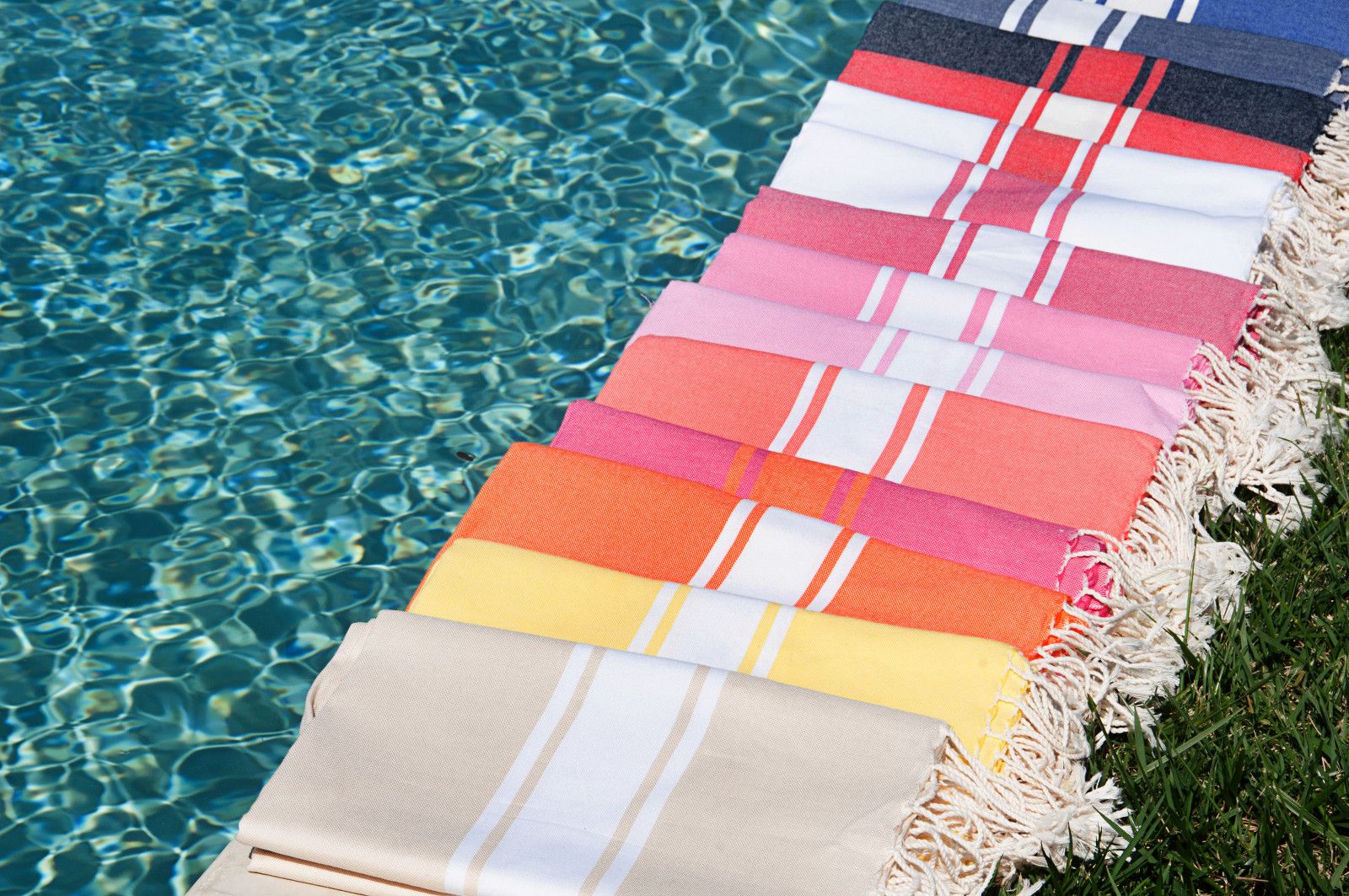 Hand-woven by craftsmen from southern Tunisia using 100% natural materials, our Best Seller - the traditional Fouta "SAINT TROPEZ" - combines lightness with incredible absorption capacity. Elegant, light and easy to maintain, its wide range of colors and the quality of its weaving allow many different uses. In addition to being the versatile accessory of our summers; beach or bath towels, sarong, scarves, throw it has become an essential object of decoration of our interiors and exteriors; draped on the back of a chair, neatly folded at the end of the bed .... it instantly brings chic and elegance to your home.