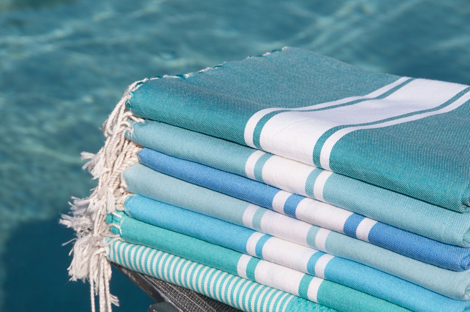 Hand-woven by craftsmen from southern Tunisia using 100% natural materials, our Best Seller - the traditional Fouta "SAINT TROPEZ" - combines lightness with incredible absorption capacity. Elegant, light and easy to maintain, its wide range of colors and the quality of its weaving allow many different uses. In addition to being the versatile accessory of our summers; beach or bath towels, sarong, scarves, throw it has become an essential object of decoration of our interiors and exteriors; draped on the back of a chair, neatly folded at the end of the bed .... it instantly brings chic and elegance to your home.