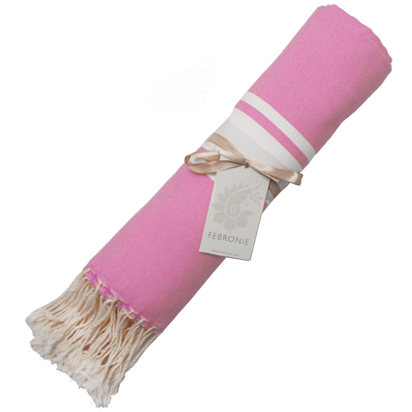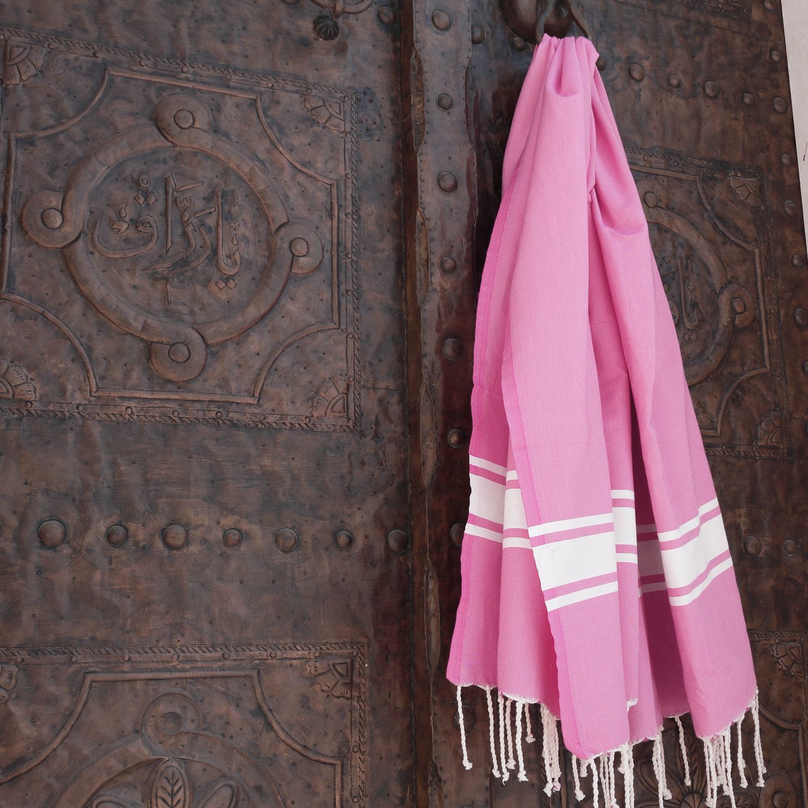 Fouta Traditionelle Unie St Tropez - Rayure Classique - Rose Malabar