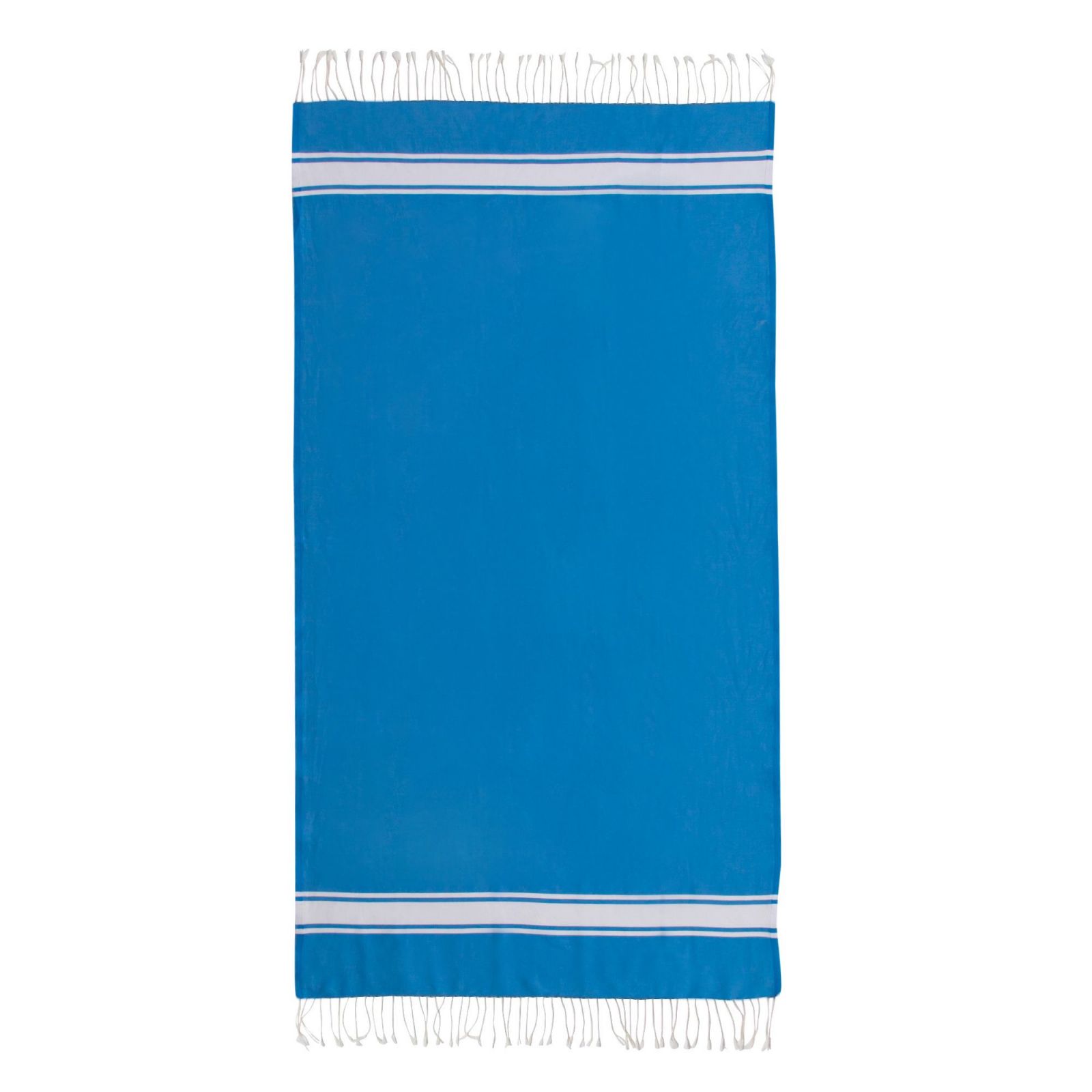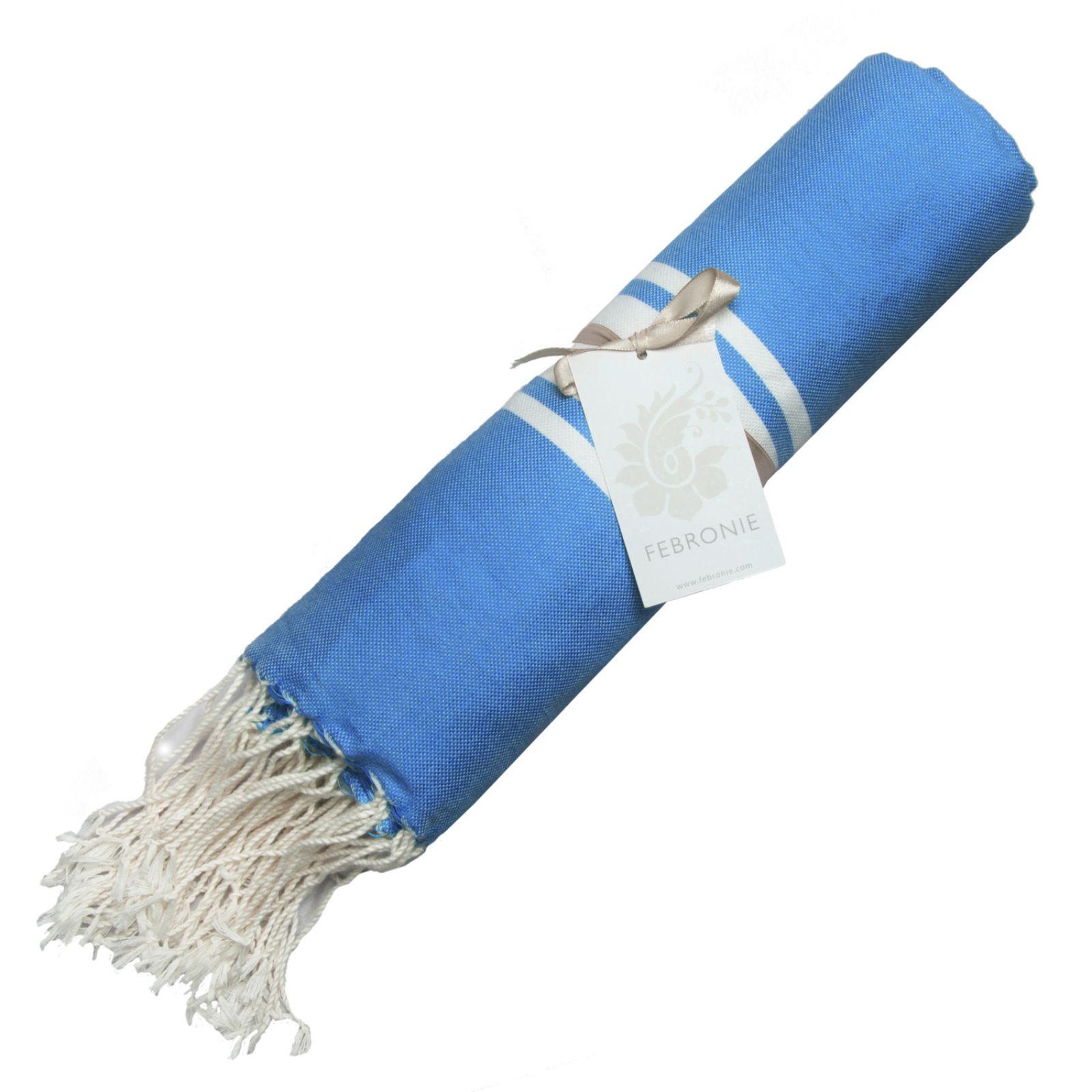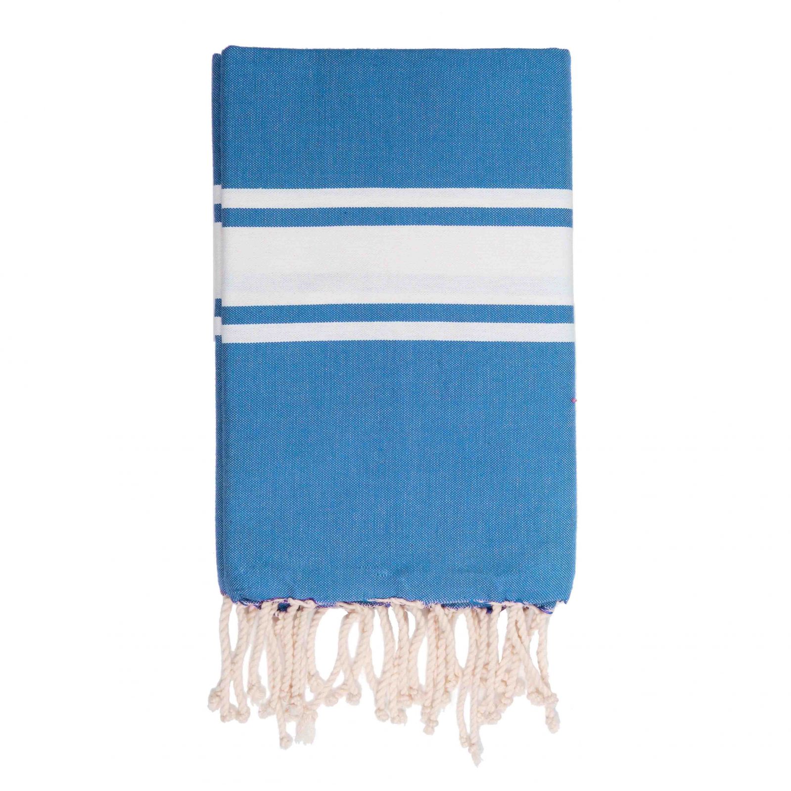 Titre : Fouta Traditionelle Unie St Tropez - Rayure Classique - Bleu Azur