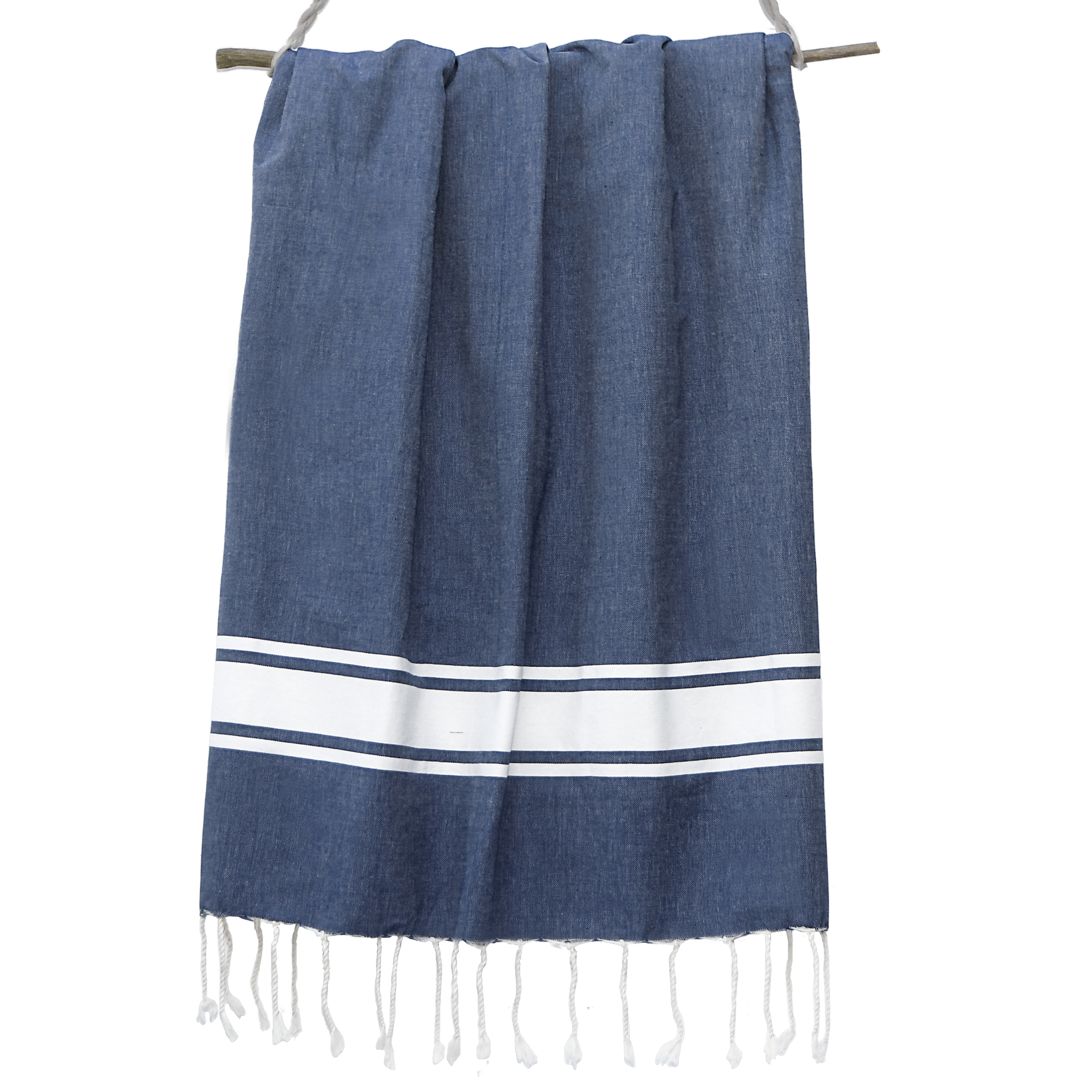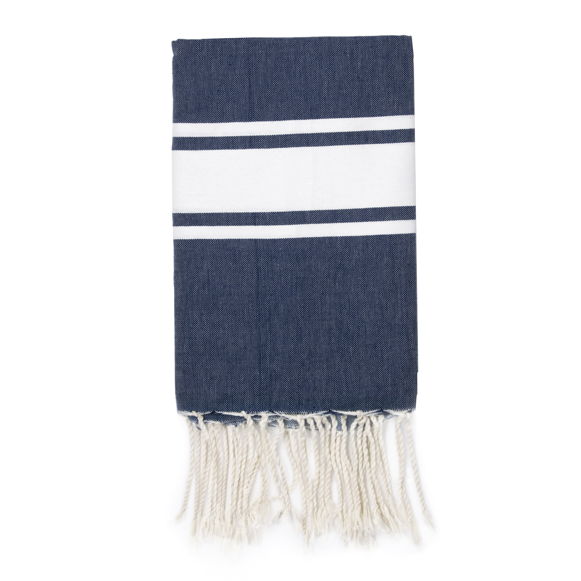 Fouta Traditionelle Unie St Tropez - Rayure Classique - Bleu Jean