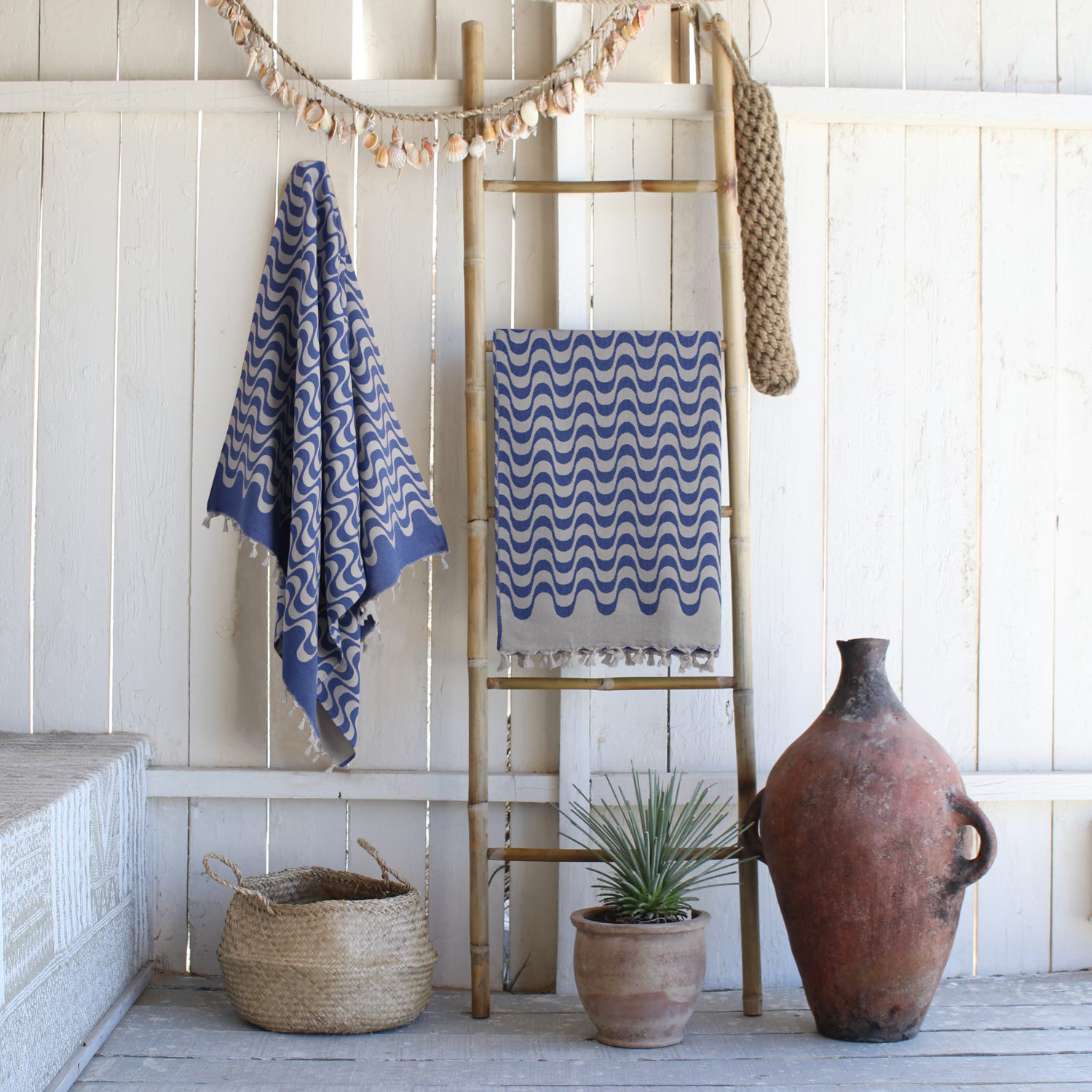 Titre : Fouta reversible Cabana 100X200 bleu grec