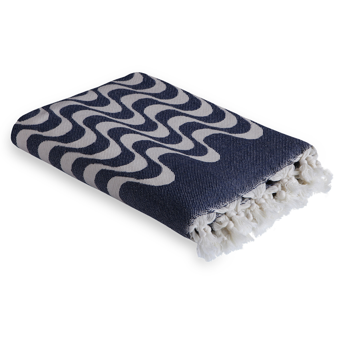 Titre : Fouta reversible Cabana 100X200 bleu marine