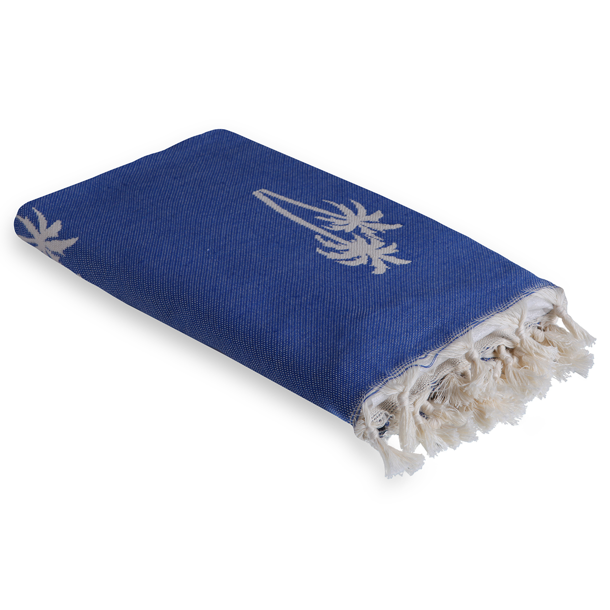 Titre : PALMIER Fouta jacquard 100x200 bleu grec