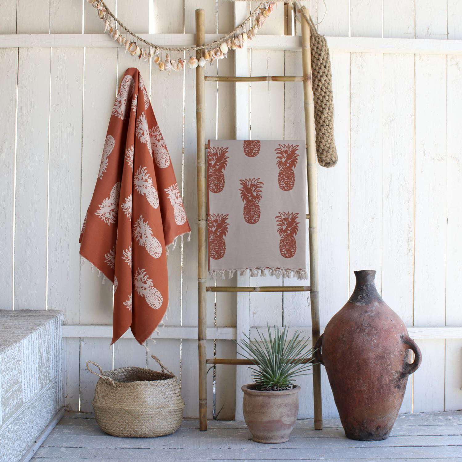 Titre : Fouta reversible Ananas 100X200 terracotta