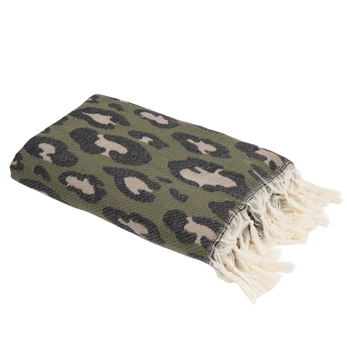 Titre : LEOPARD Fouta jacquard 100x200 vert kaki