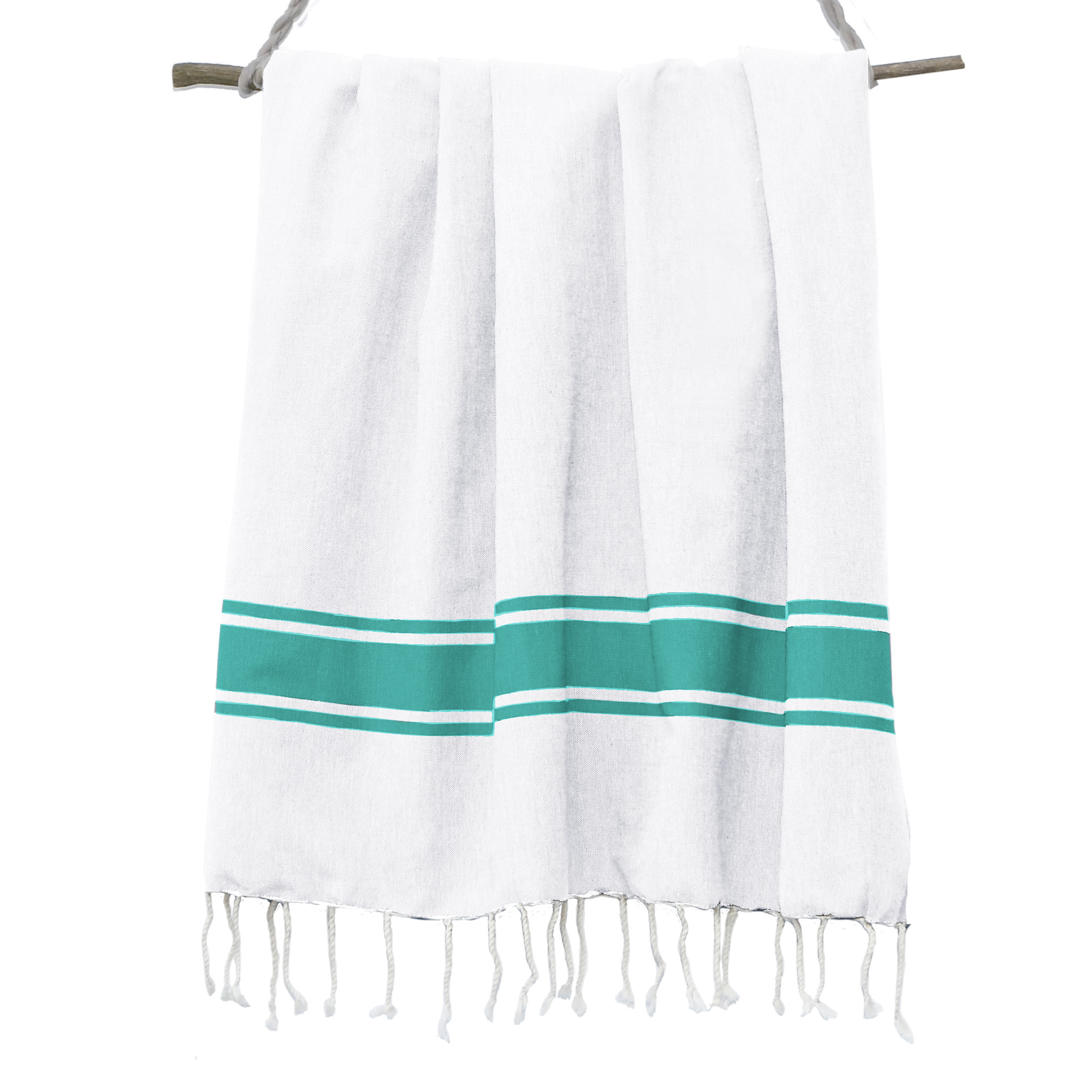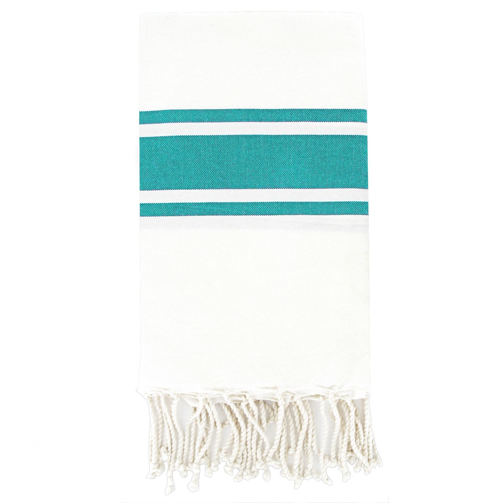 Fouta Traditionelle Unie St Tropez - Rayure Classique- Blanc/Turquoise