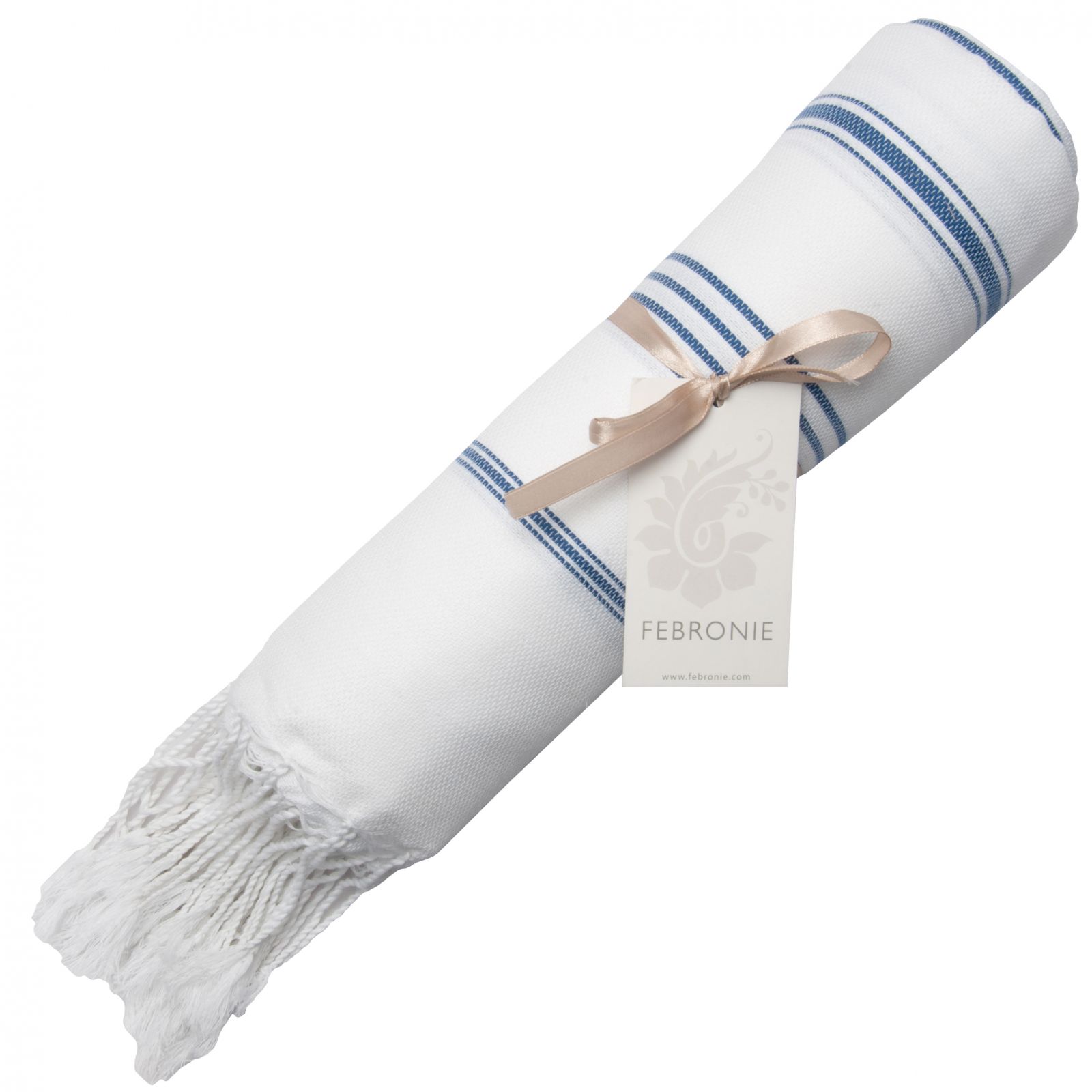 Titre : Fouta Mykonos - Blanc / Bleu Grec