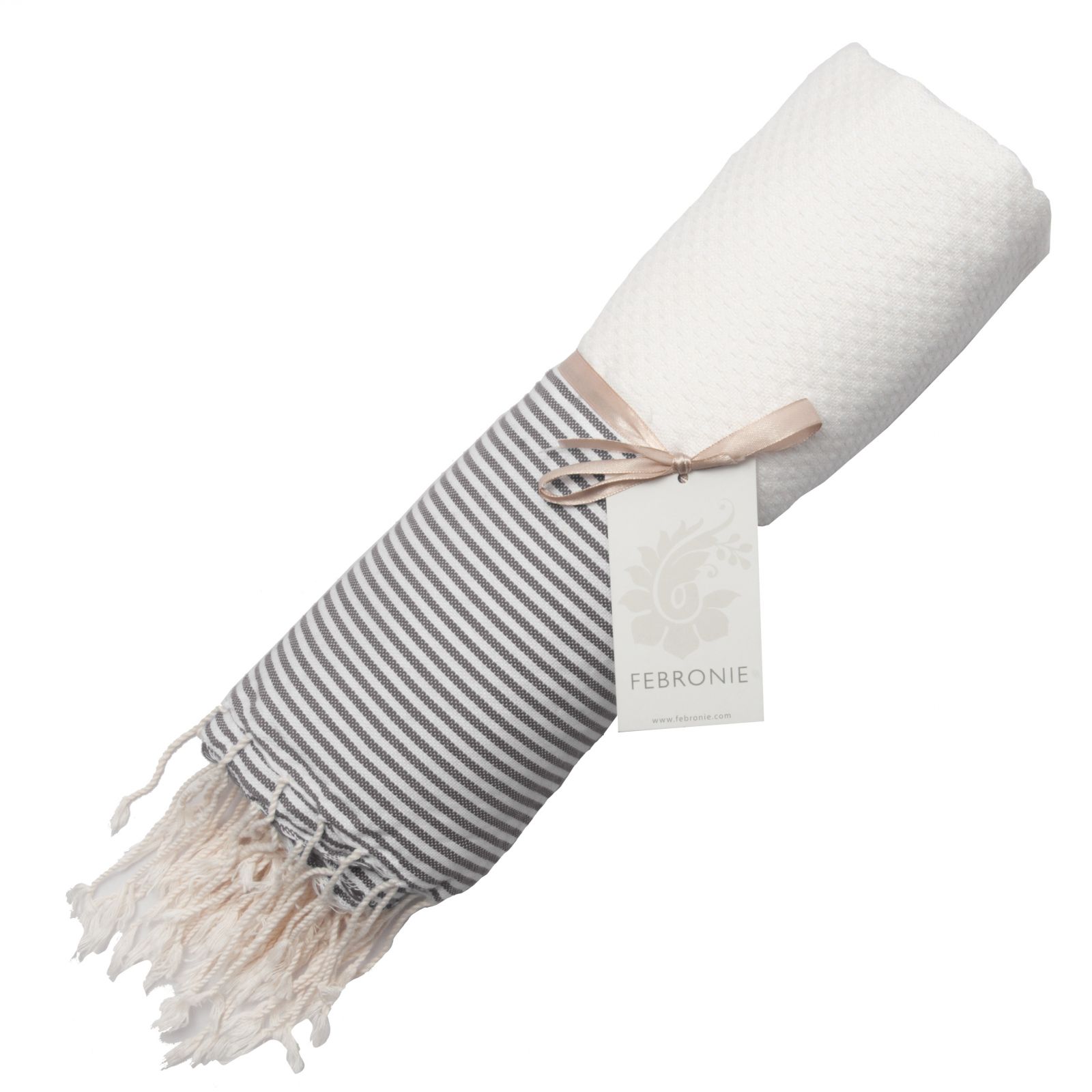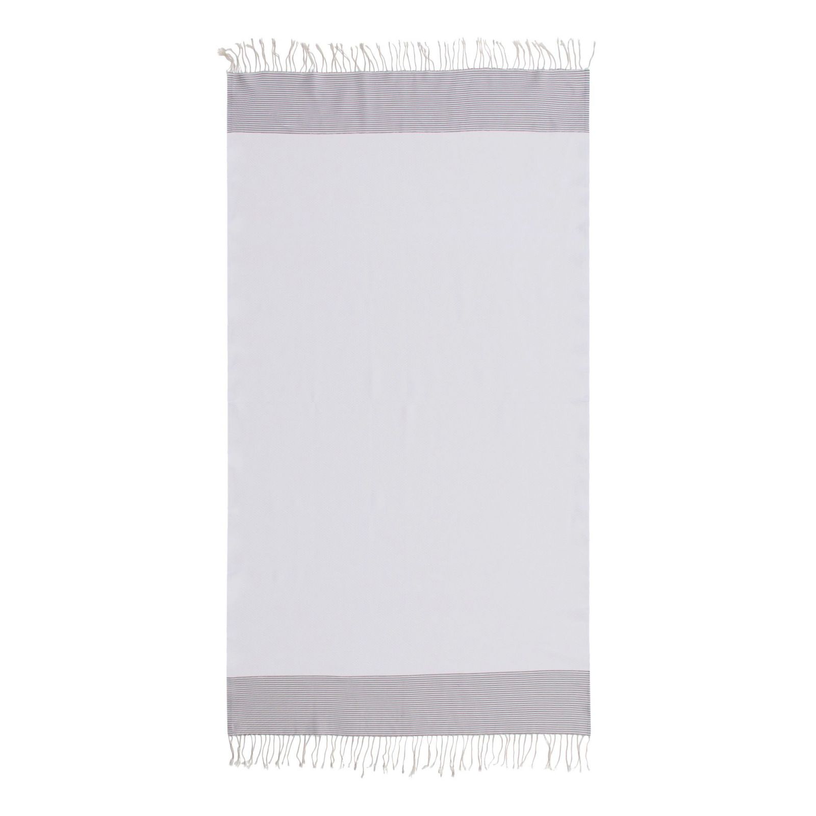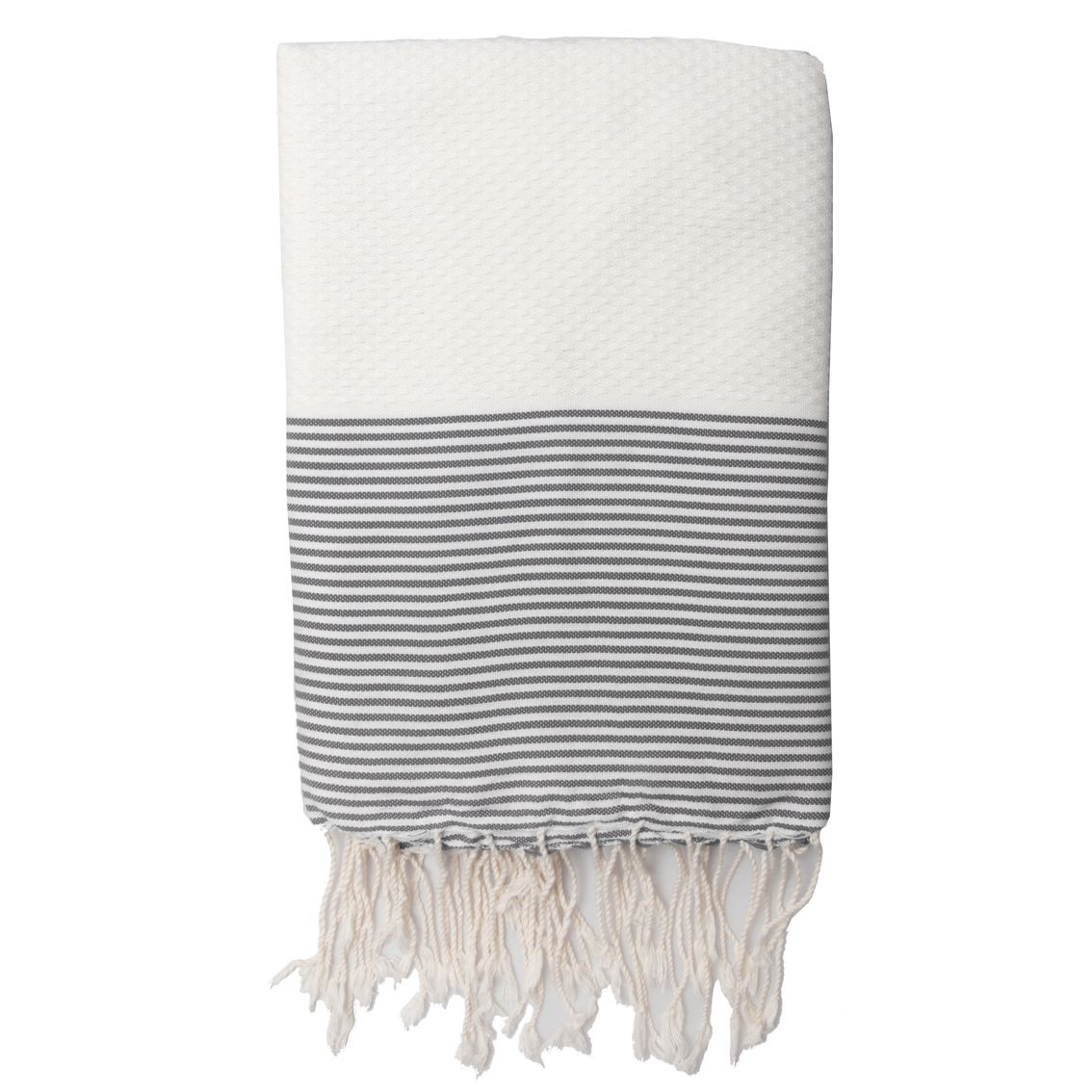Titre : Fouta Nid d'abeille Ibiza - Rayure fine - Blanc / Taupe Clair