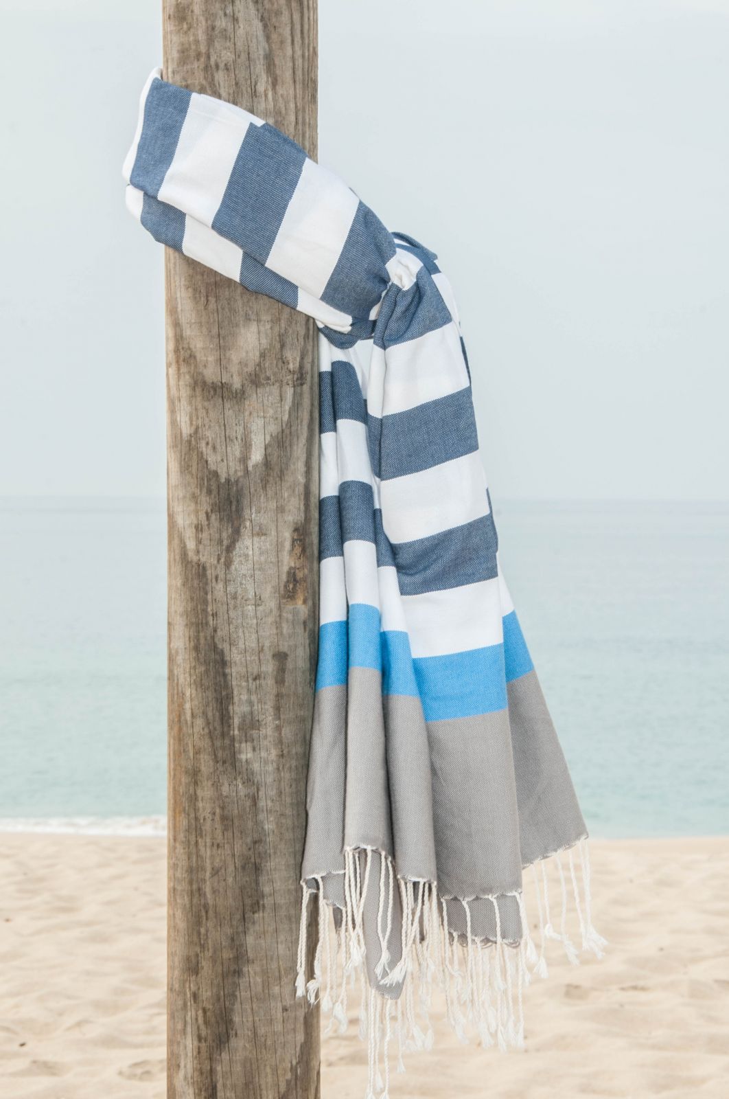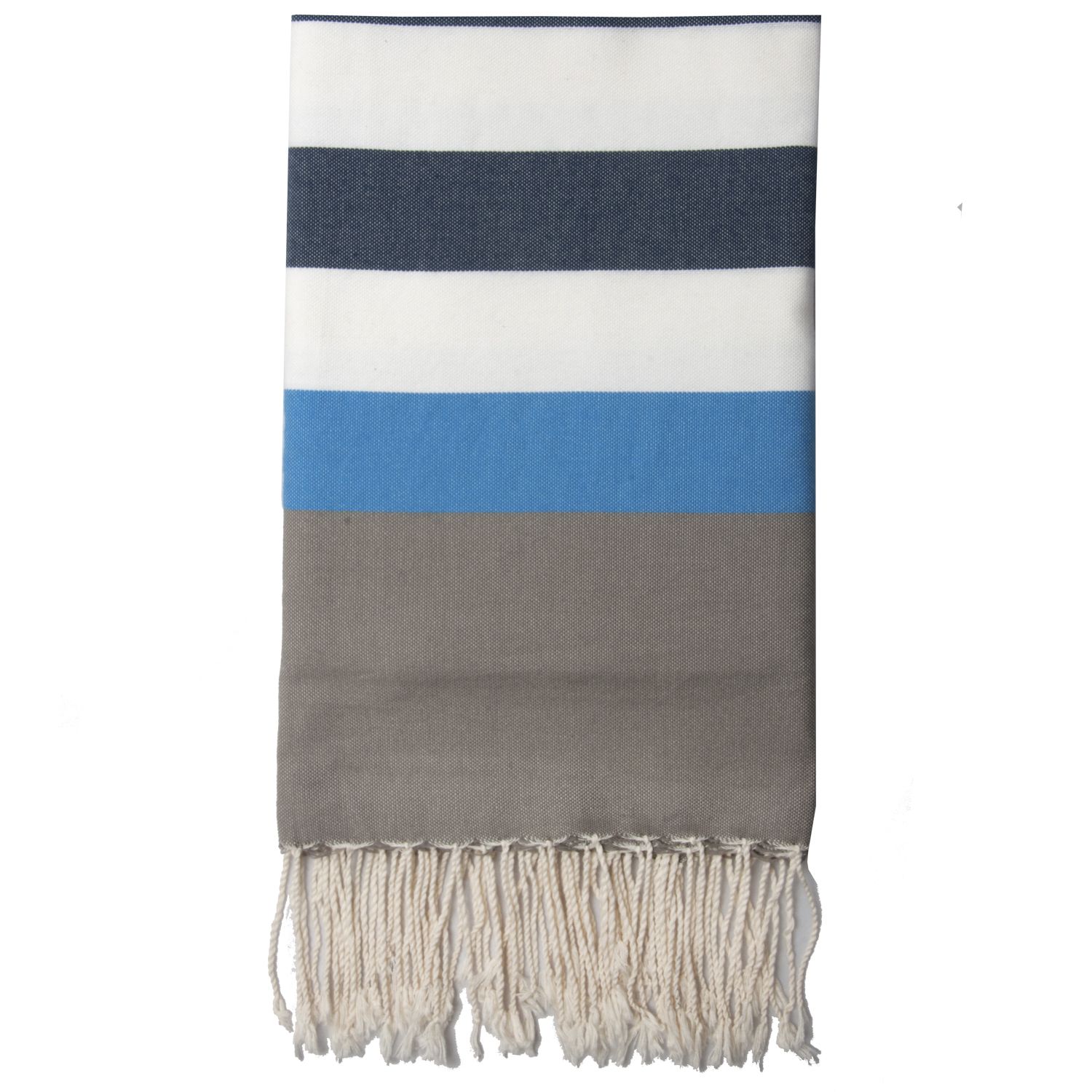 Fouta Arcachon Taupe Clair / Blanc / Bleu Jean / Bleu Azur