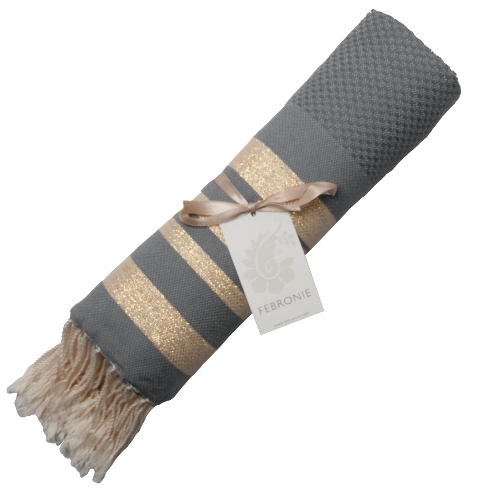 Titre : Fouta Nid d'abeille - Hamptons - Lurex - Gris Moyen / Or
