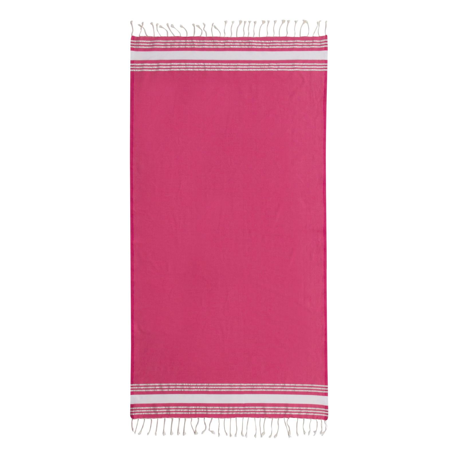 Titre : Fouta St Barth Rose Fuschia / Blanc / Argent