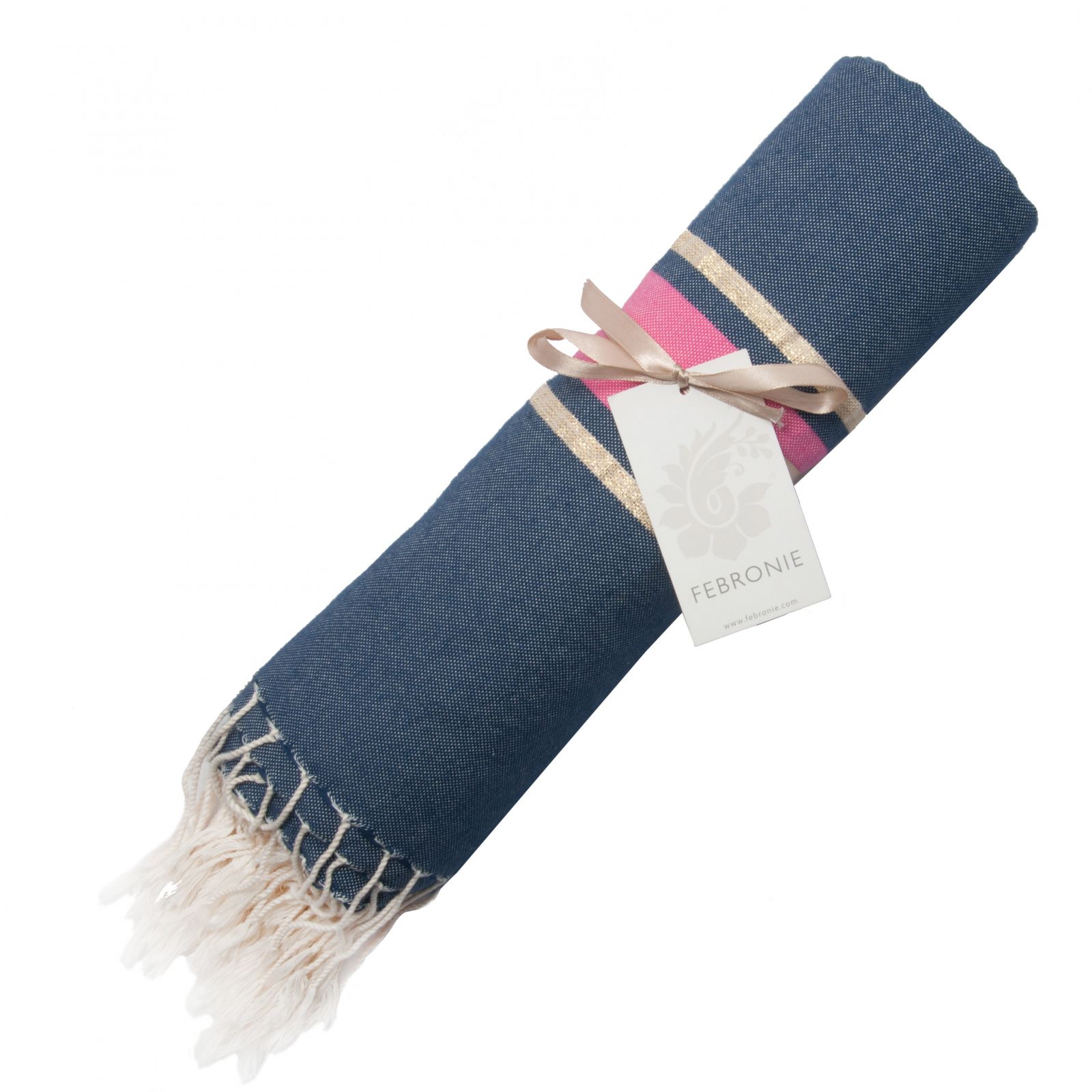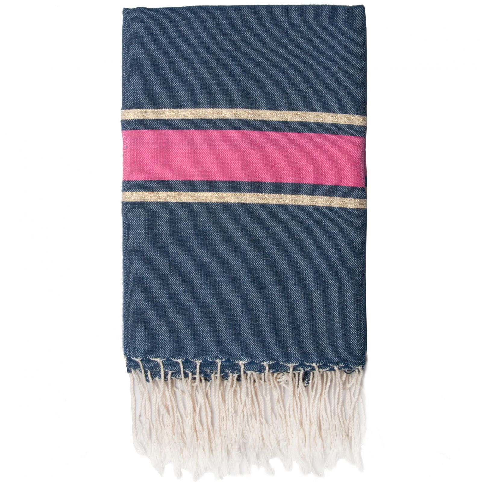 Traditional Fouta Bicolore - Lurex - St Tropez Denim Blue - Fuschia Pink/ Gold