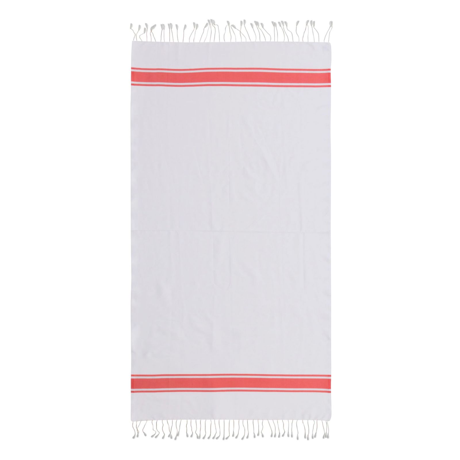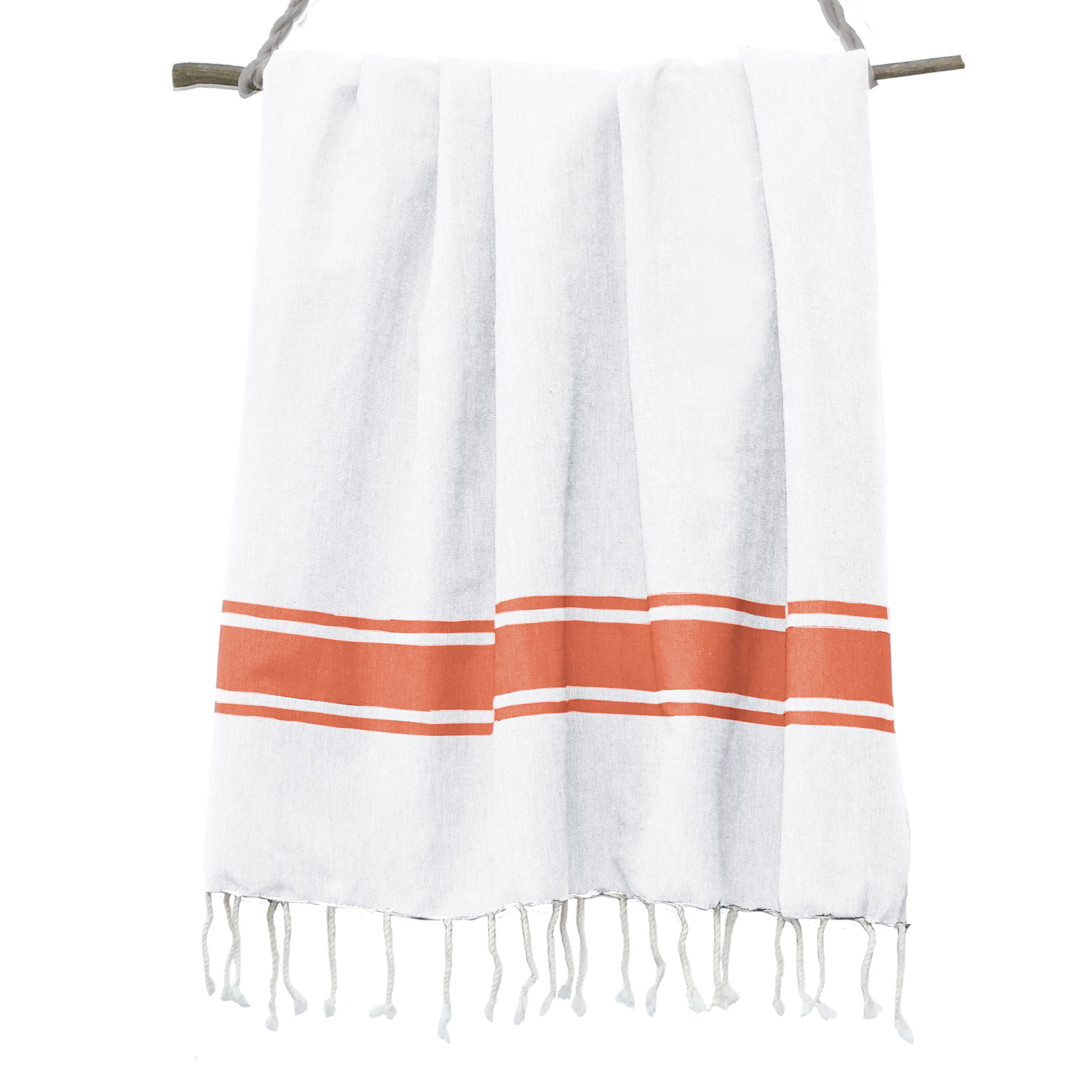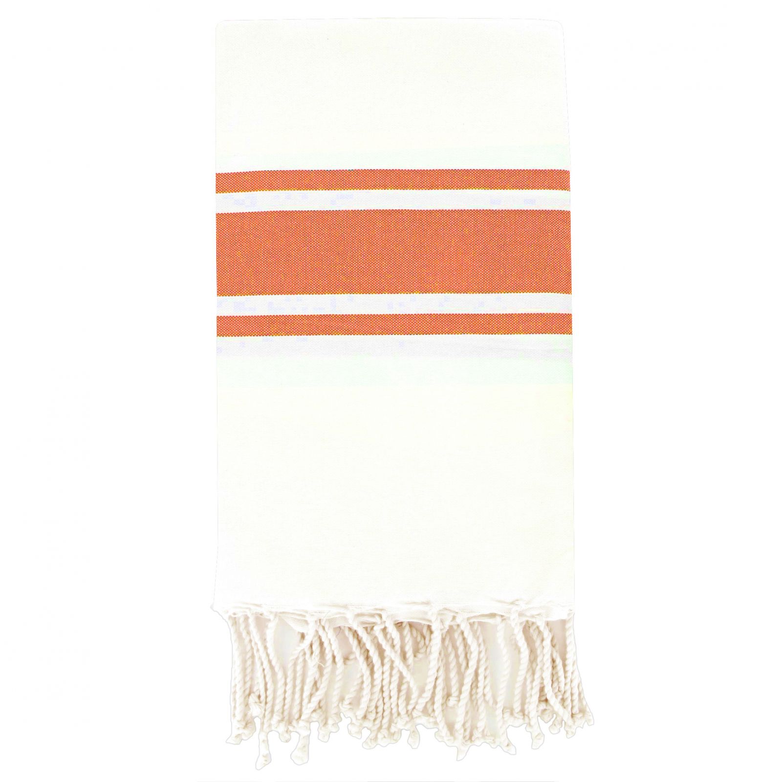 ST TROPEZ - Fouta en coton blanche bandes orange corail 200x100