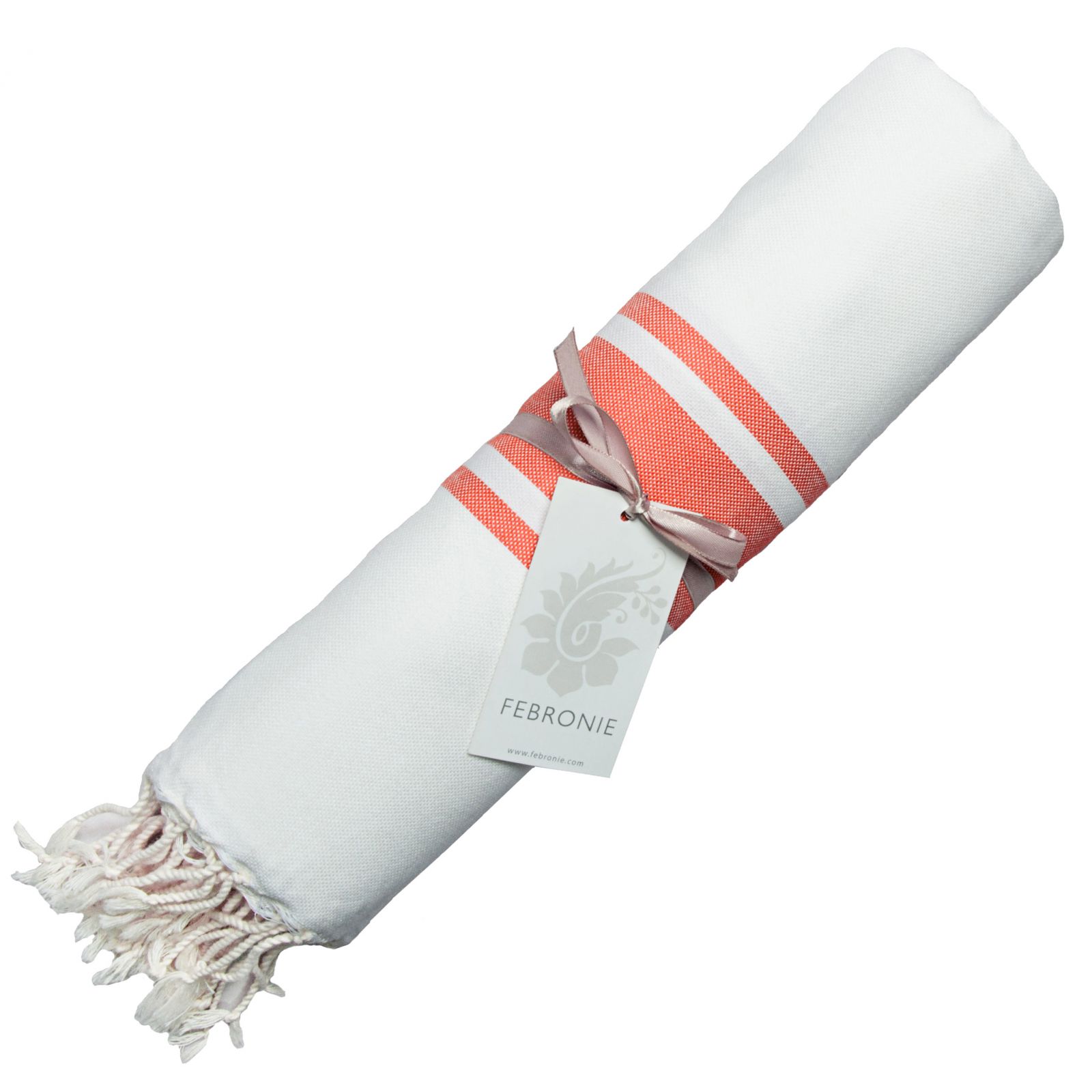 Traditional Fouta St Tropez - Classic Stripe - White/ Coral orange