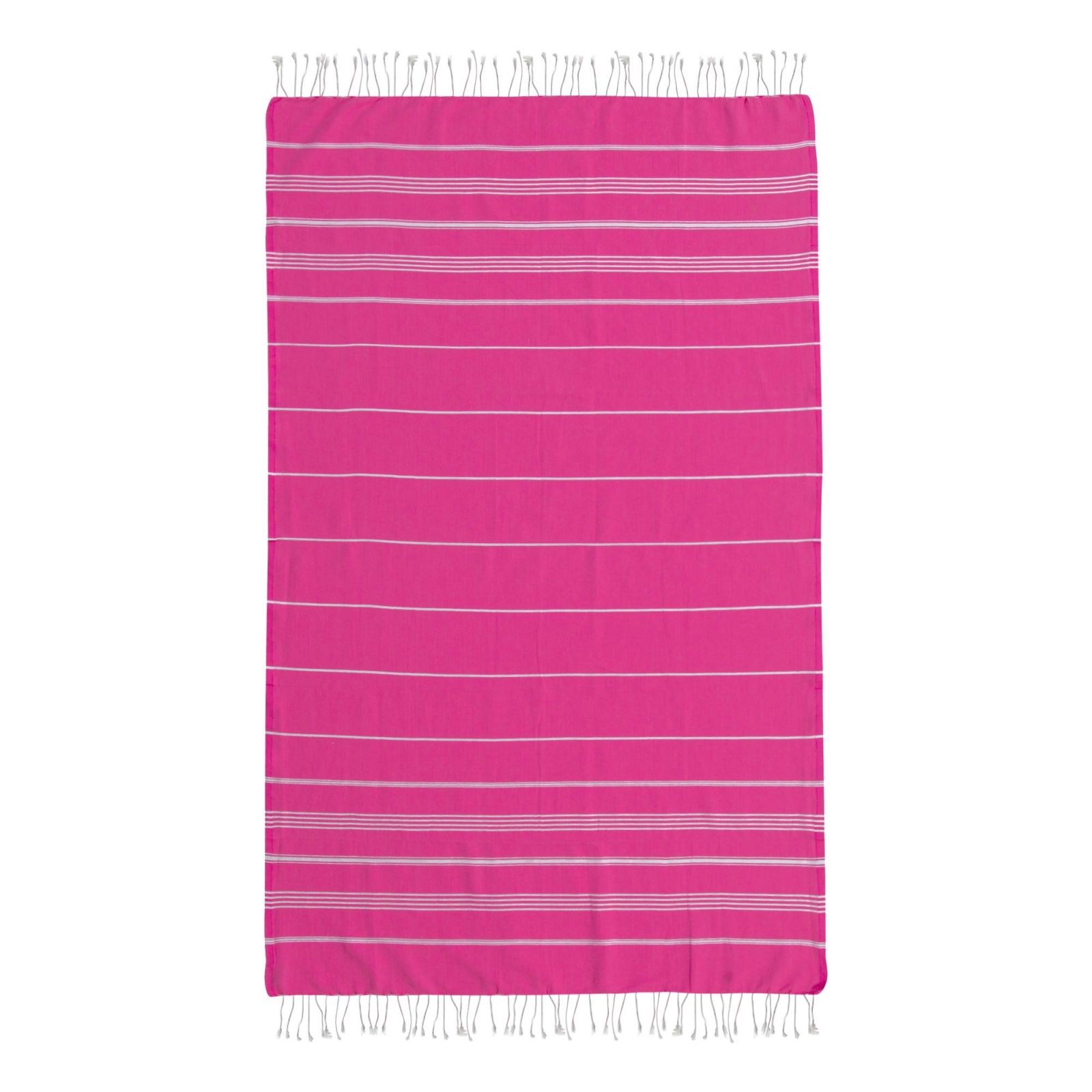 Hand-woven by artisans from southern Tunisia using 100% natural materials, the fouta "MYKONOS" - Traditionally used for centuries, in Turkish baths, combines lightness with absorption capacity. Elegant, light and easy to maintain, its wide range of colors and the quality of its weaving allow it a declination under different uses. In addition to being the versatile accessory of our summers; beach or bath towels, pareo, scarves, stoles, it has become the essential object of decoration of our interiors and exteriors; draped on the back of a chair, neatly folded at the end of the bed .... it instantly brings chic and elegance to your home.\n