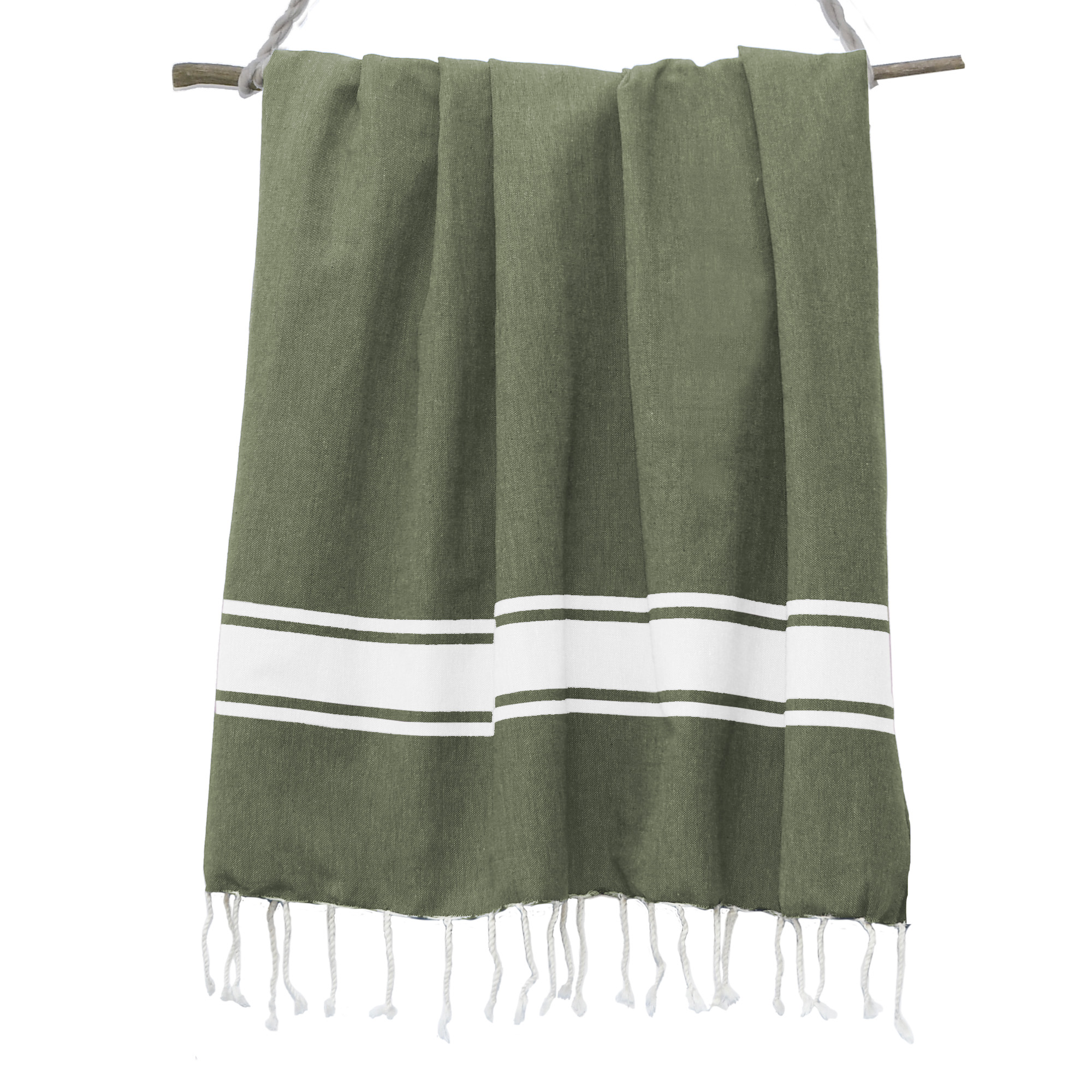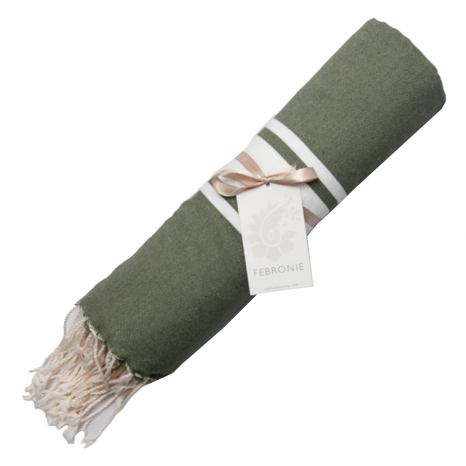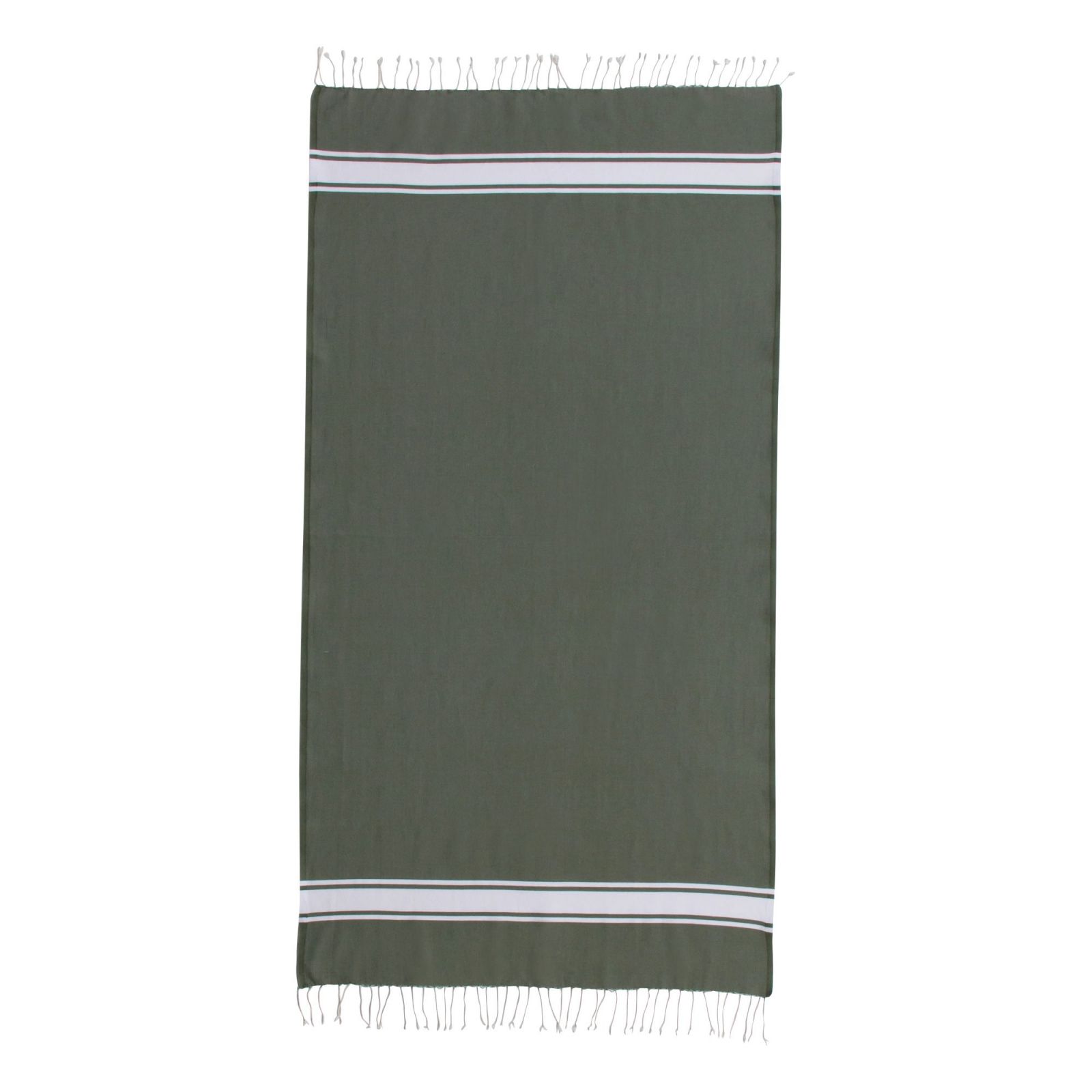 Titre : Fouta Traditionelle Unie St Tropez - Rayure Classique - Vert Kaki