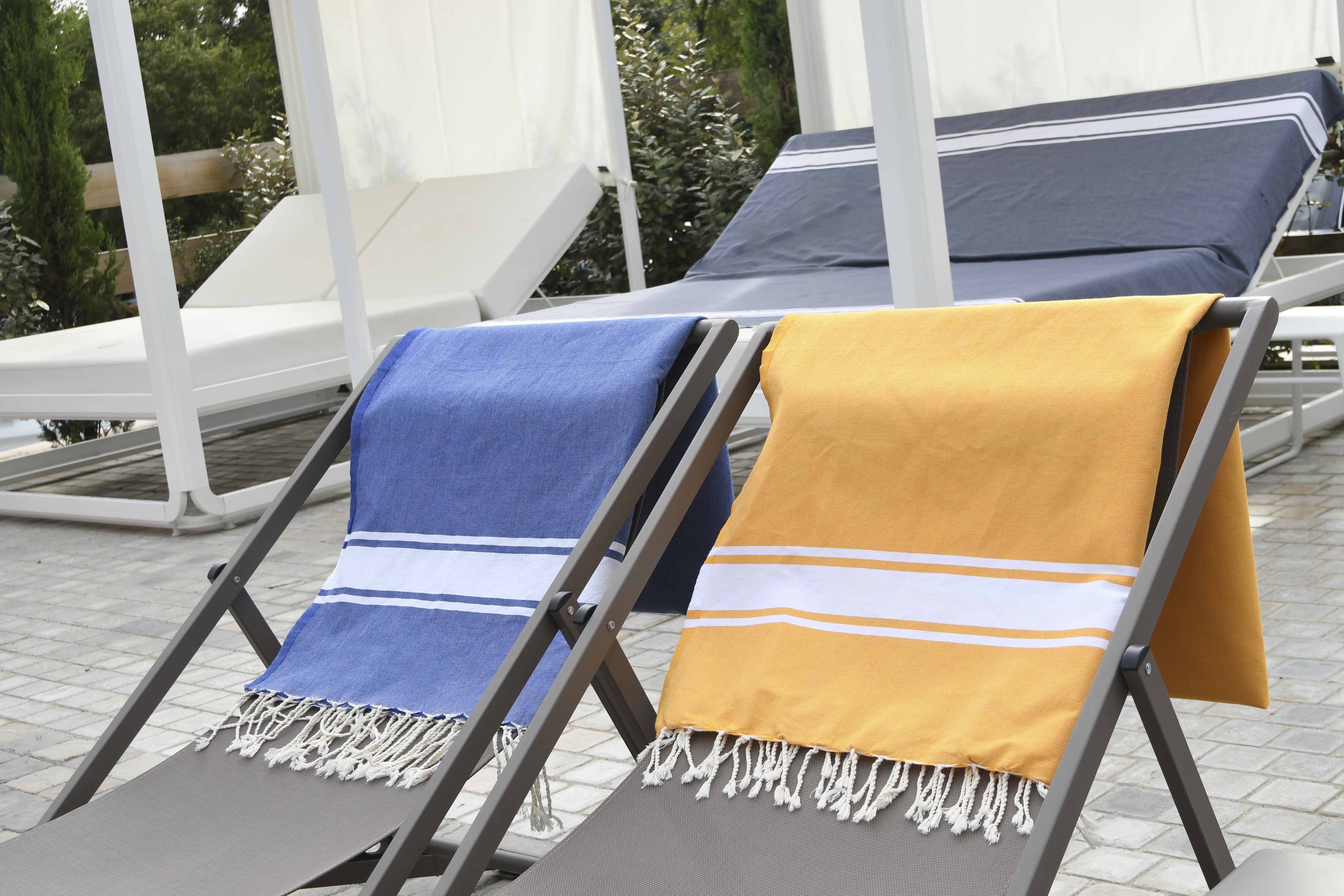 Hand-woven by craftsmen from southern Tunisia using 100% natural materials, our Best Seller - the traditional Fouta "SAINT TROPEZ" - combines lightness with incredible absorption capacity. Elegant, light and easy to maintain, its wide range of colors and the quality of its weaving allow many different uses. In addition to being the versatile accessory of our summers; beach or bath towels, sarong, scarves, throw it has become an essential object of decoration of our interiors and exteriors; draped on the back of a chair, neatly folded at the end of the bed .... it instantly brings chic and elegance to your home.