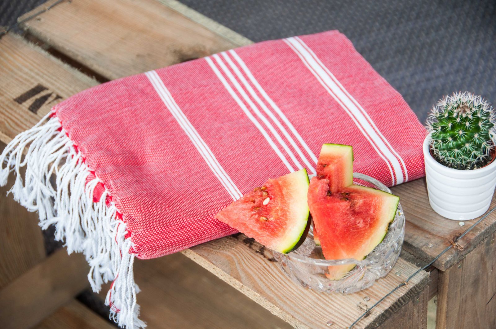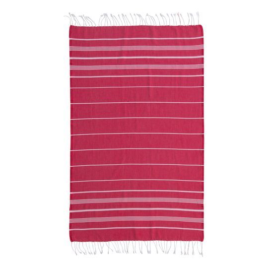 Hand-woven by artisans from southern Tunisia using 100% natural materials, the fouta "MYKONOS" - Traditionally used for centuries, in Turkish baths, combines lightness with absorption capacity. Elegant, light and easy to maintain, its wide range of colors and the quality of its weaving allow it a declination under different uses. In addition to being the versatile accessory of our summers; beach or bath towels, pareo, scarves, stoles, it has become the essential object of decoration of our interiors and exteriors; draped on the back of a chair, neatly folded at the end of the bed .... it instantly brings chic and elegance to your home.\n