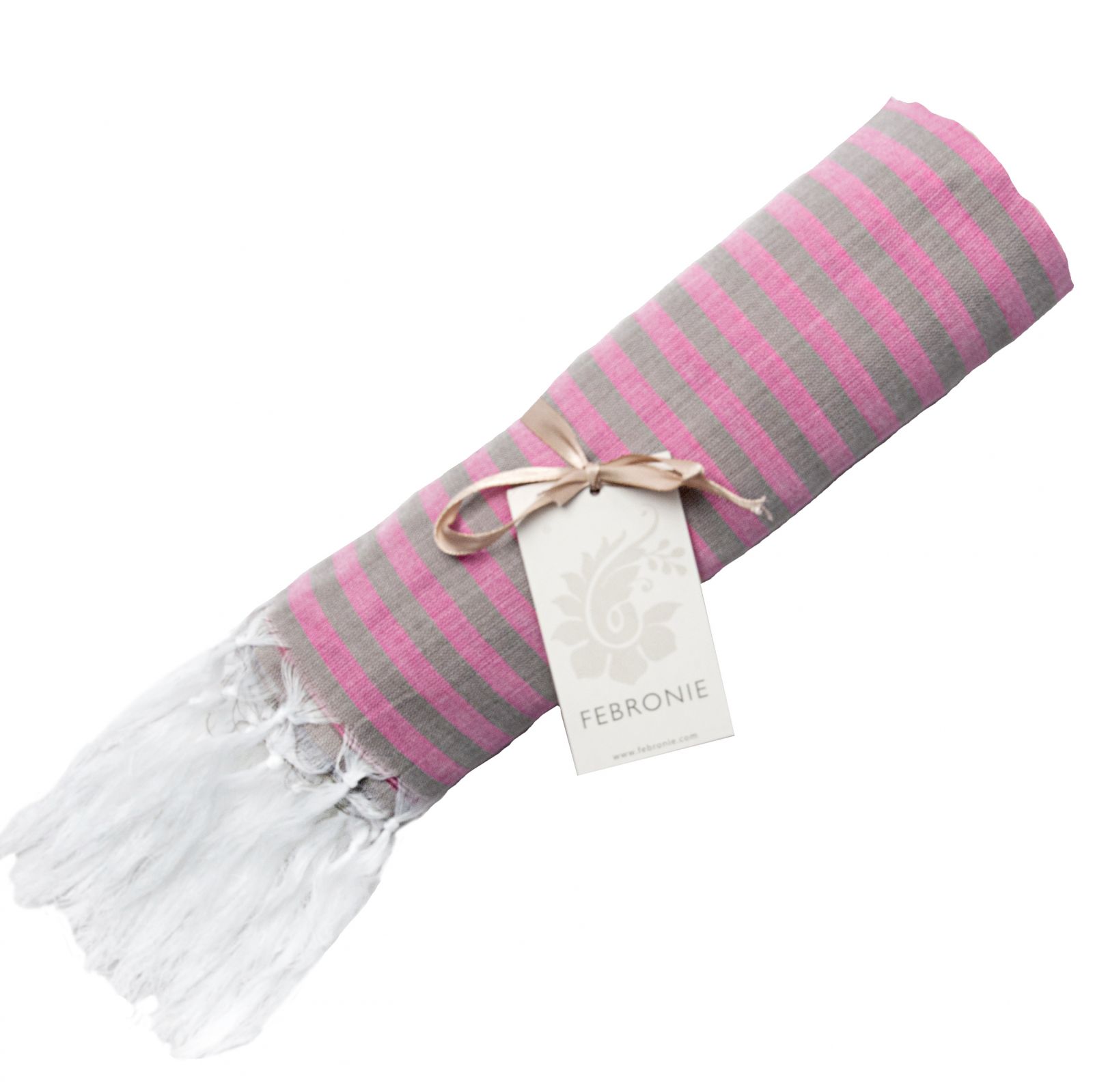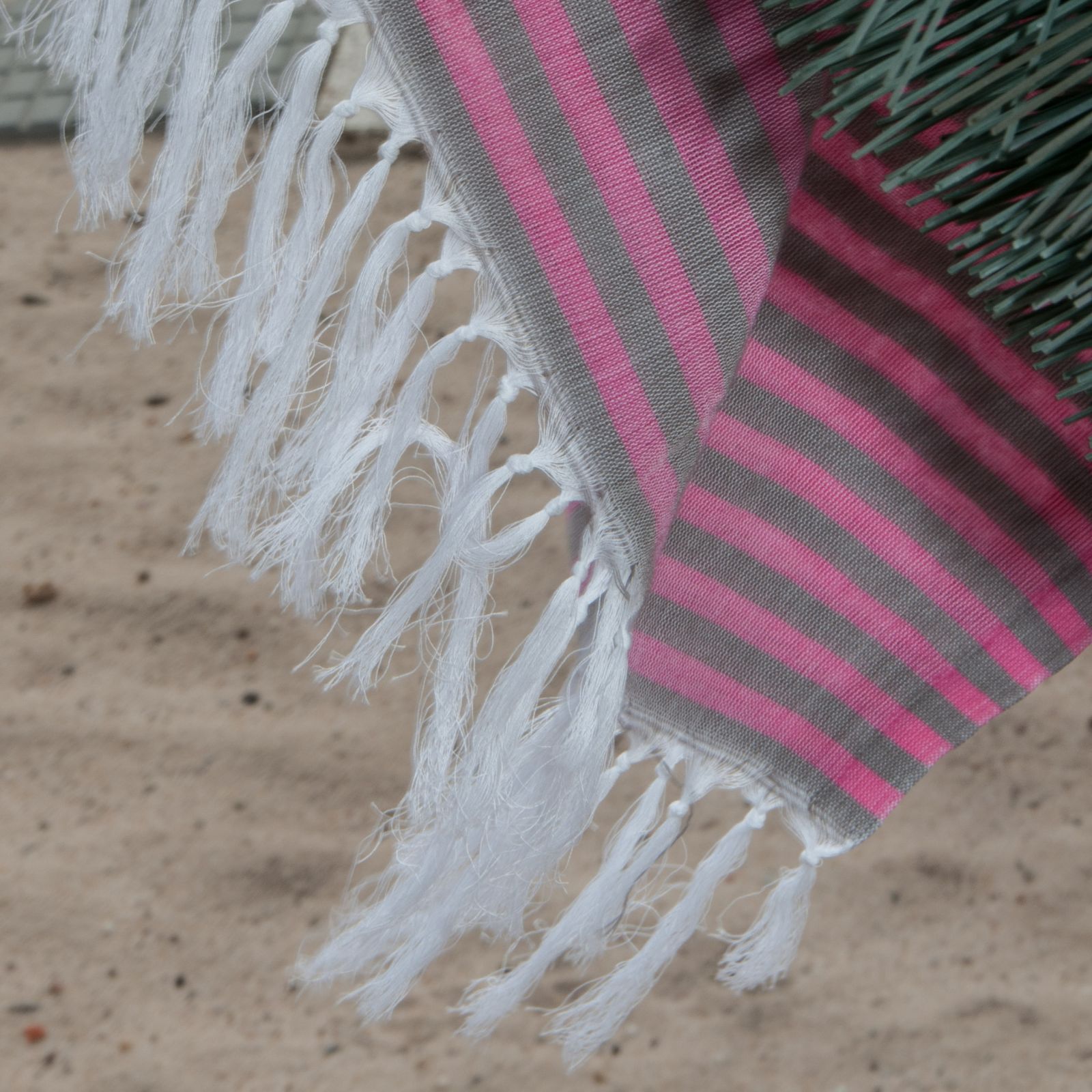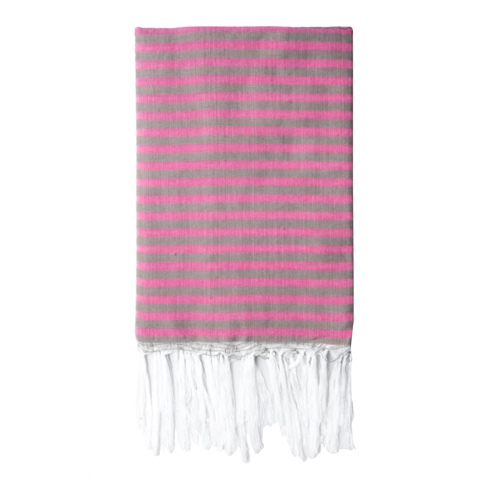 Fouta Bora Bora - Light Taupe / Fuschia Pink