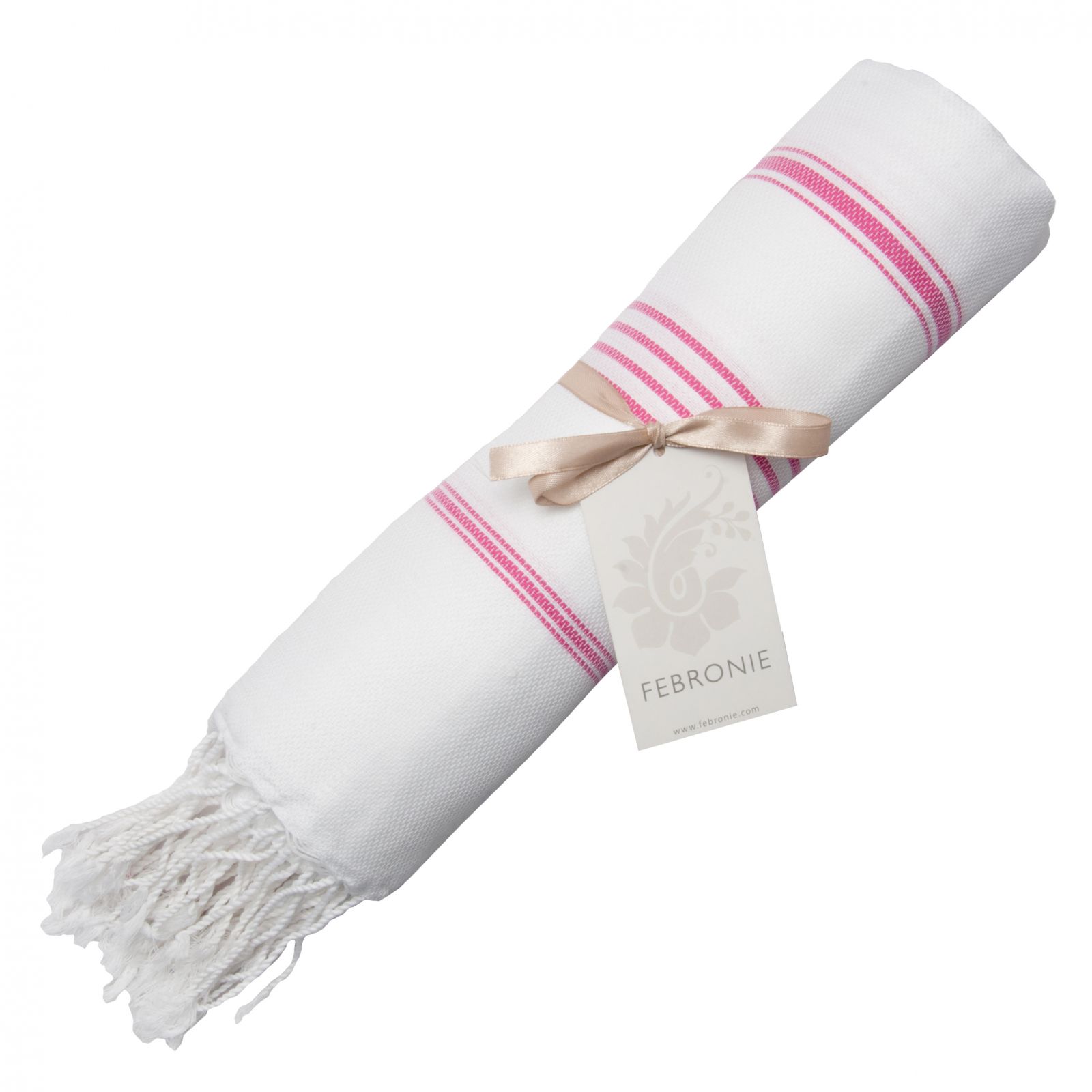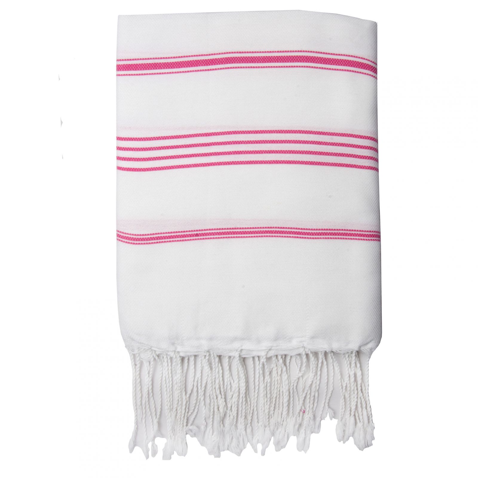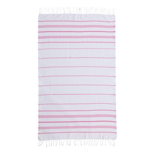 Titre : Fouta Mykonos - Blanc / Rose Fuschia