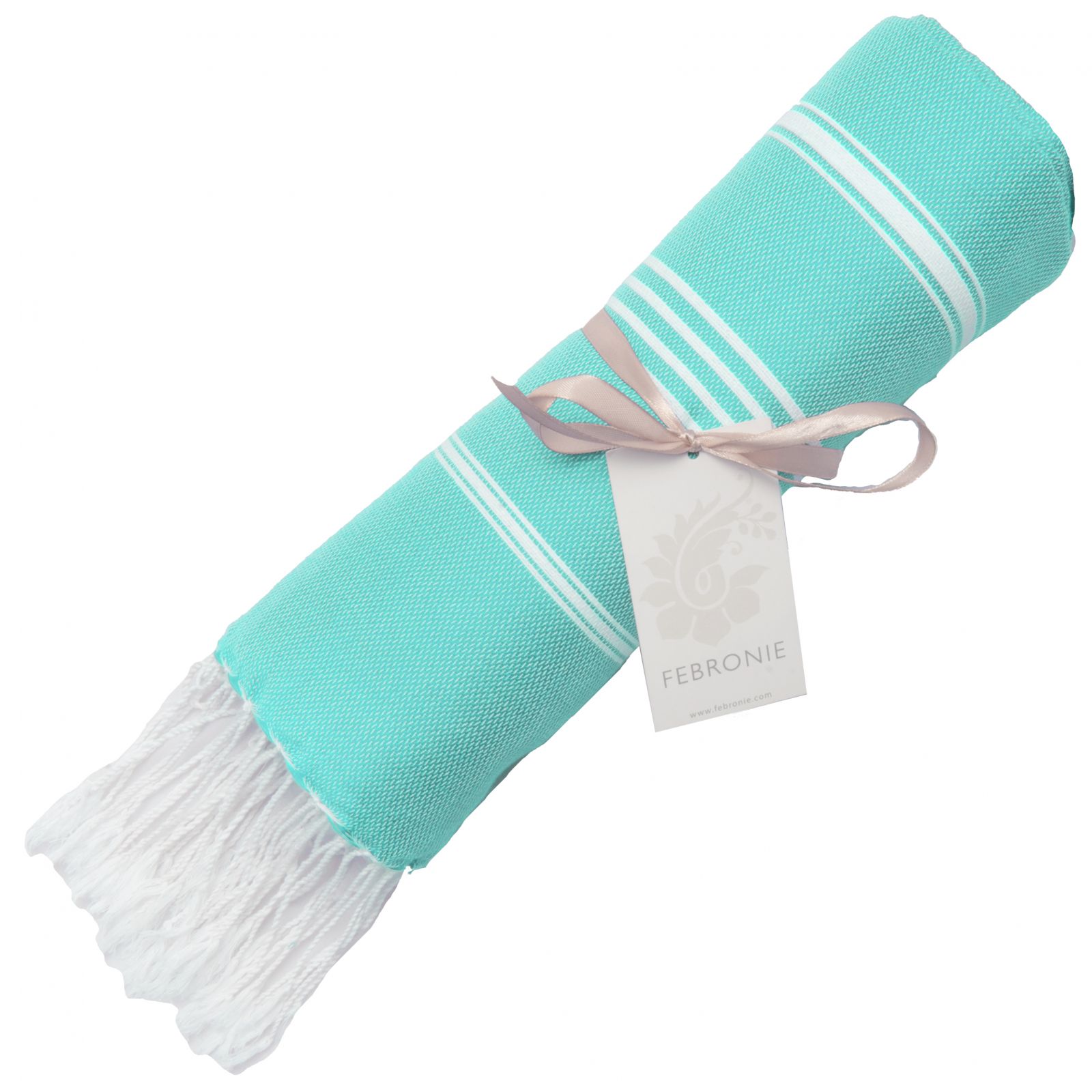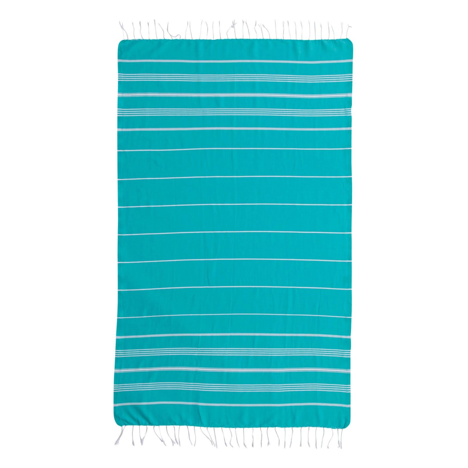 Hand-woven by artisans from southern Tunisia using 100% natural materials, the fouta "MYKONOS" - Traditionally used for centuries, in Turkish baths, combines lightness with absorption capacity. Elegant, light and easy to maintain, its wide range of colors and the quality of its weaving allow it a declination under different uses. In addition to being the versatile accessory of our summers; beach or bath towels, pareo, scarves, stoles, it has become the essential object of decoration of our interiors and exteriors; draped on the back of a chair, neatly folded at the end of the bed .... it instantly brings chic and elegance to your home.\n