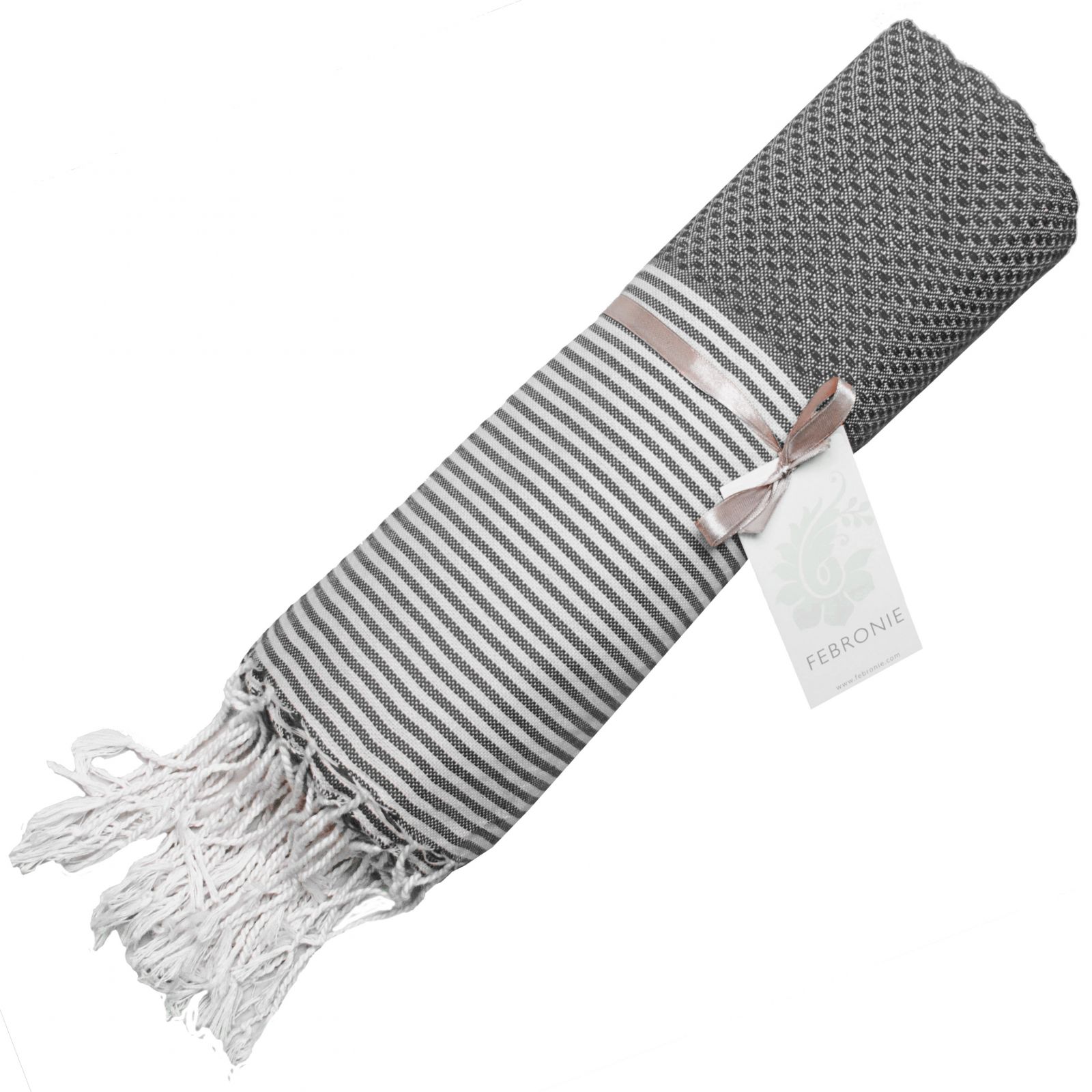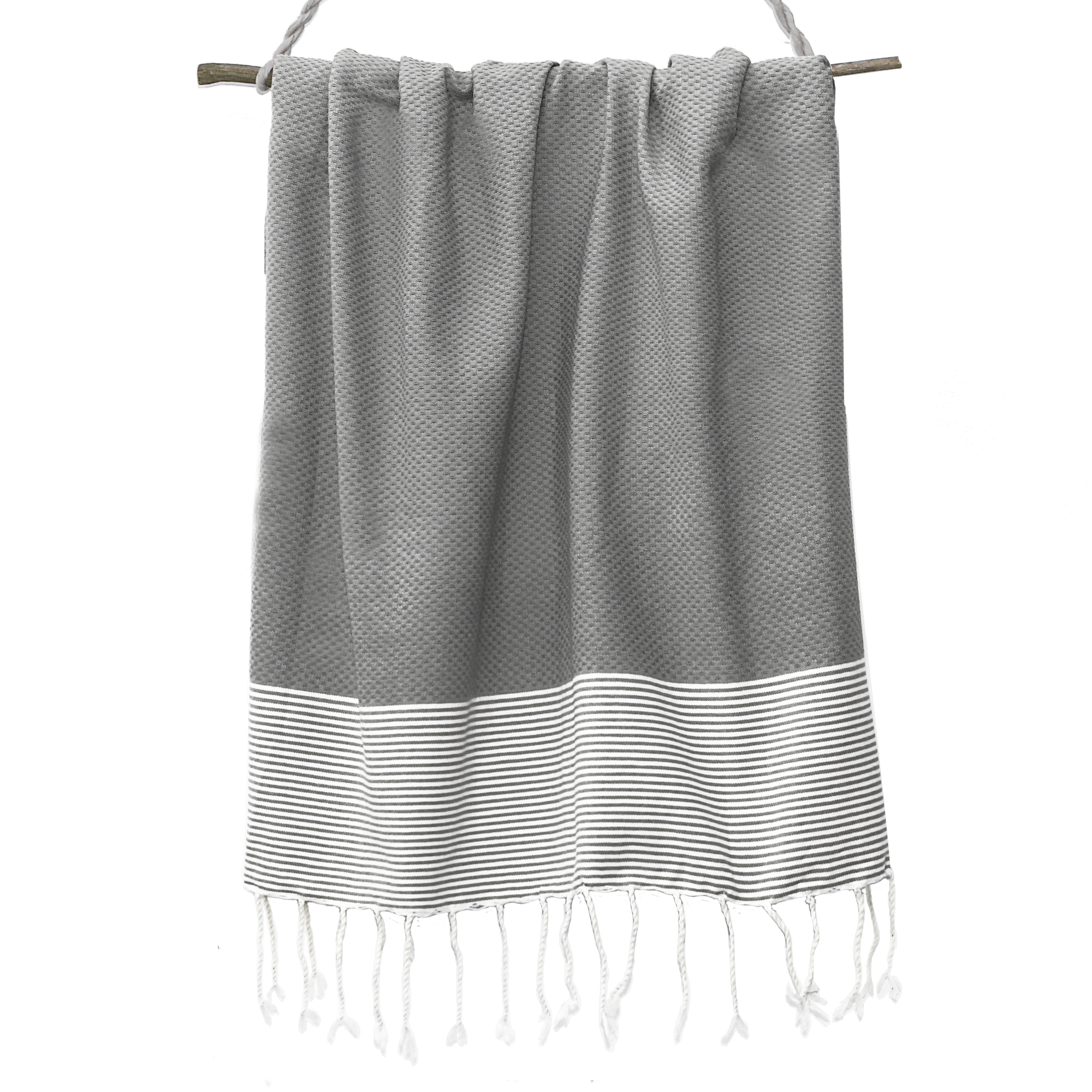 Titre : Fouta Nid d'abeille Ibiza - Rayure fine - Gris Moyen