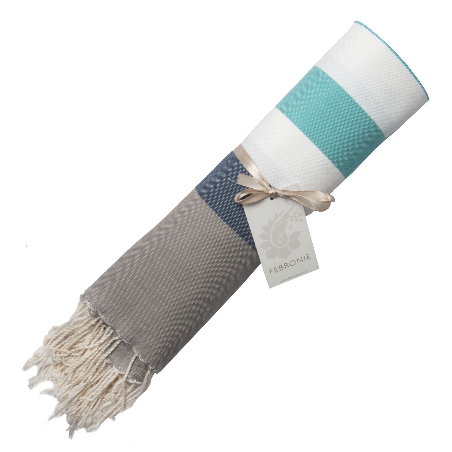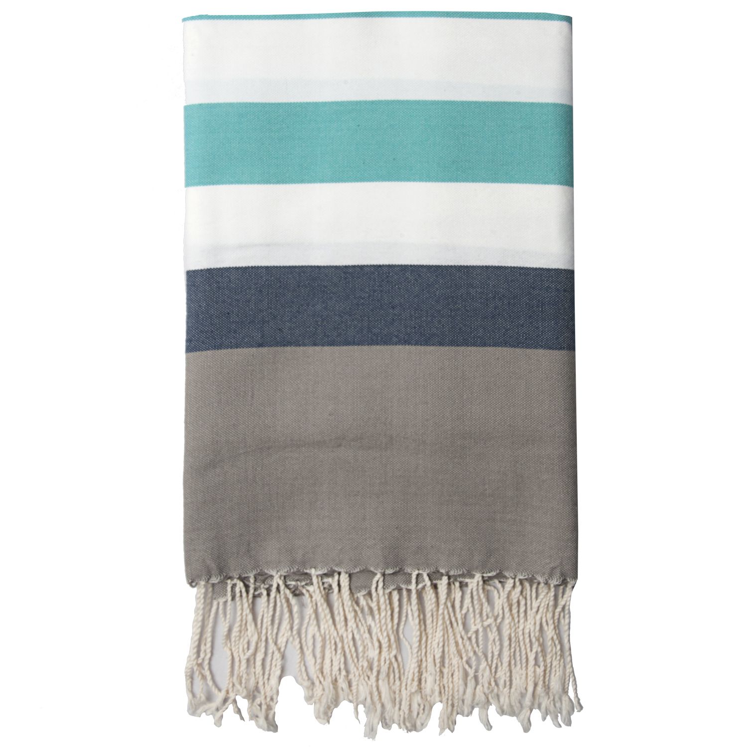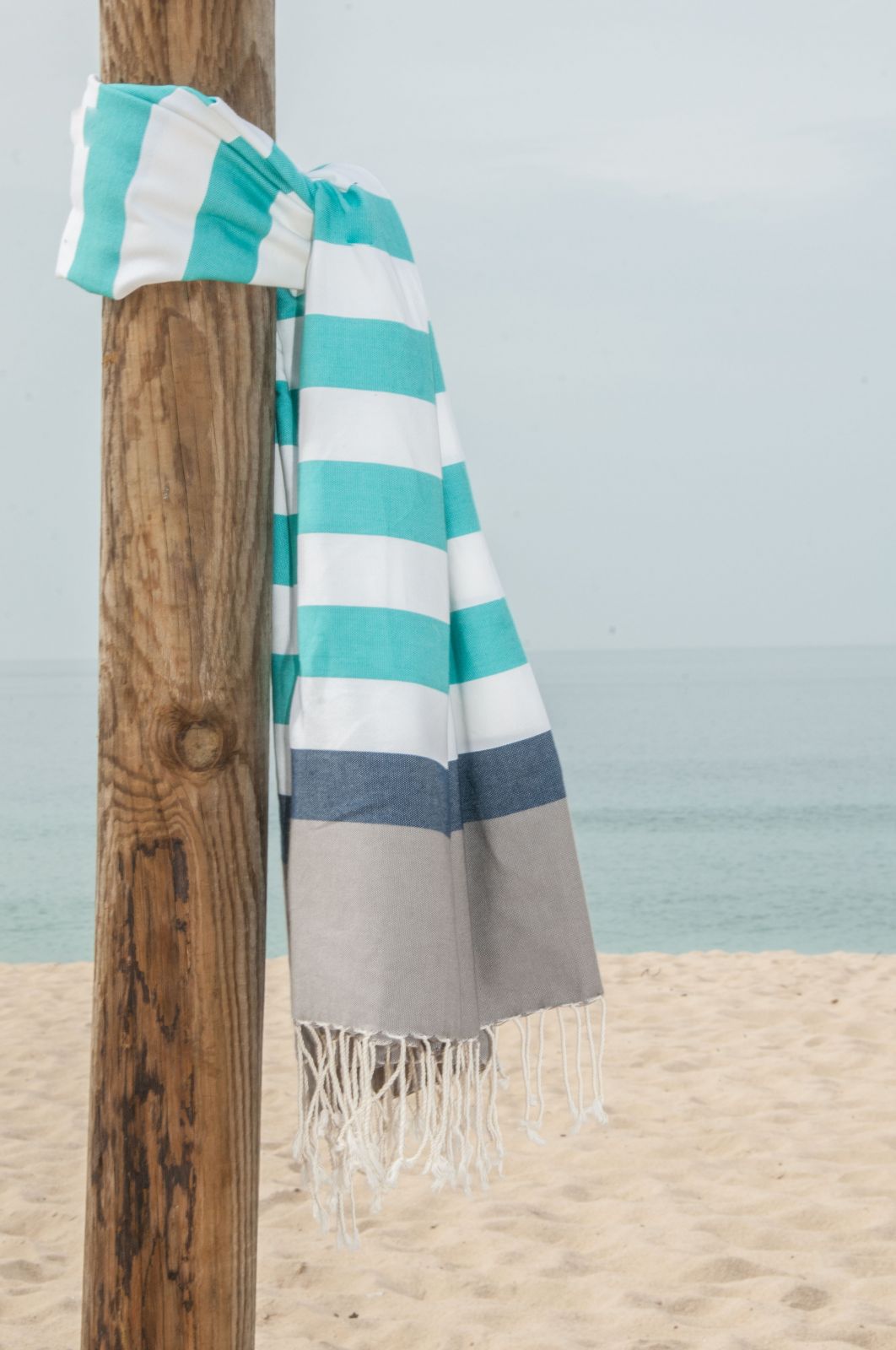 Fouta Arcachon Light Taupe / White / Turquoise Green / Denim Blue