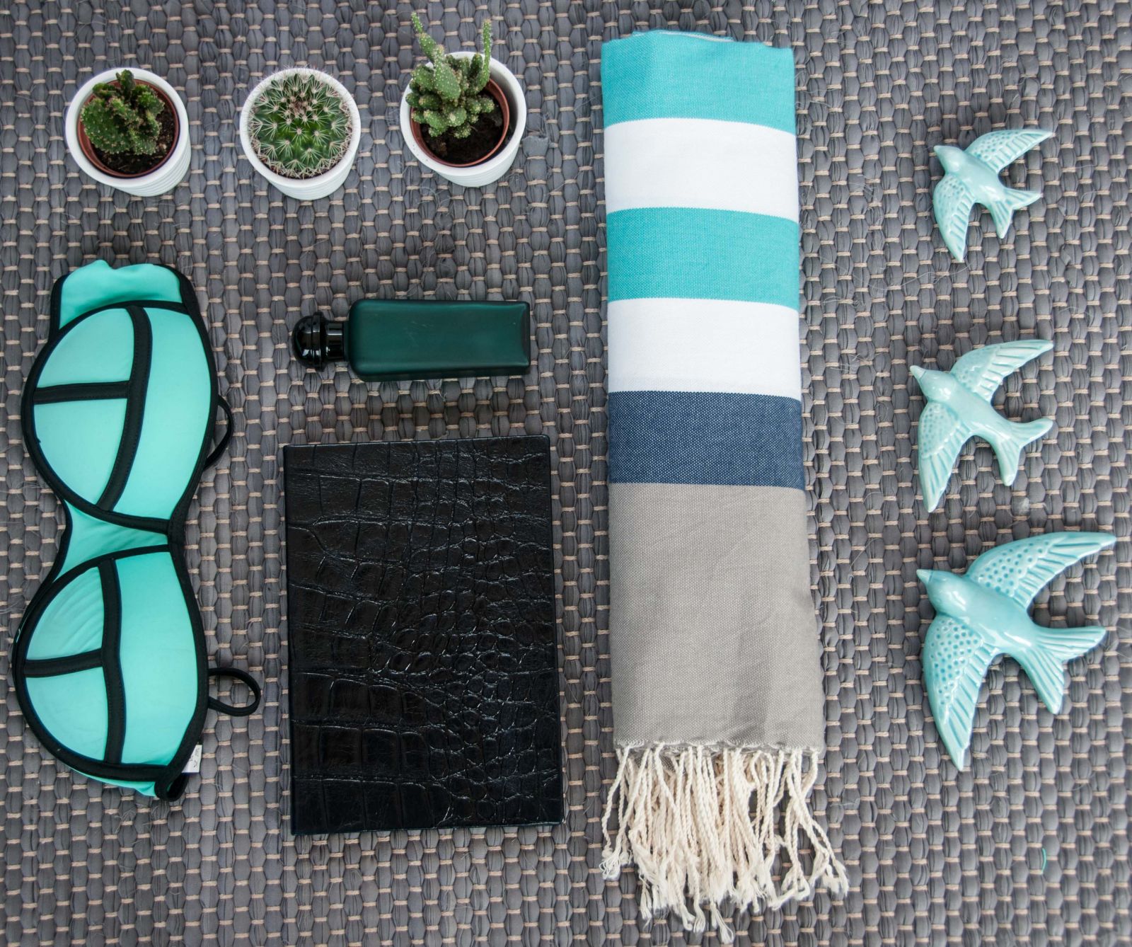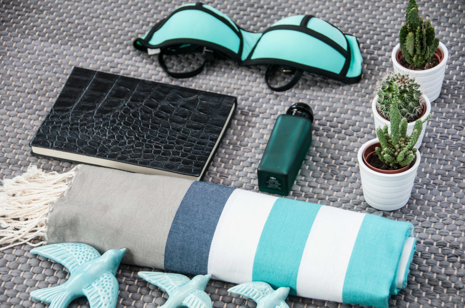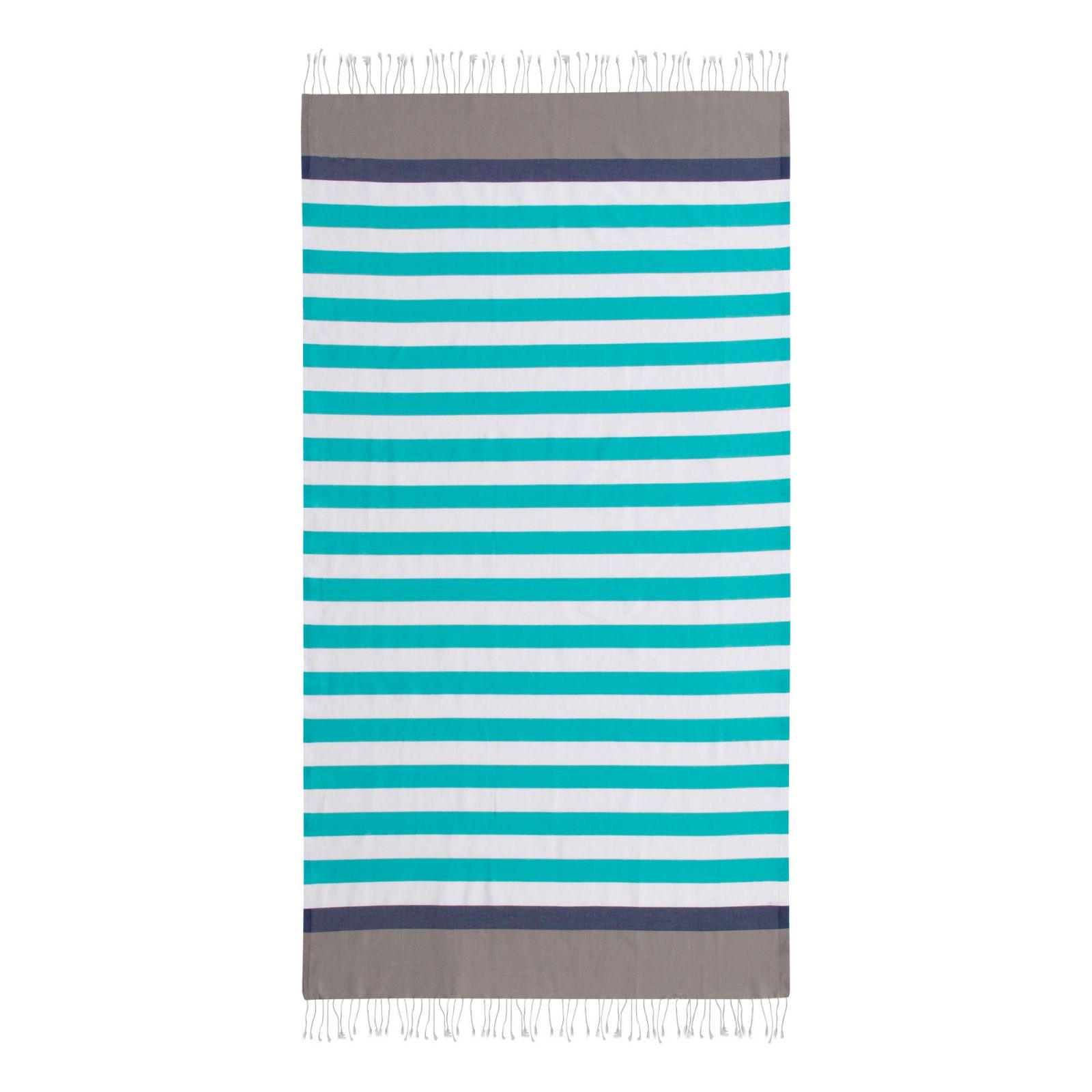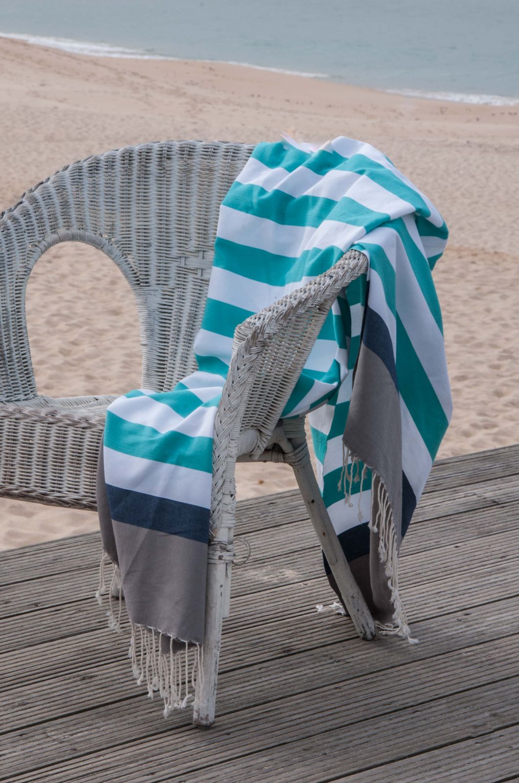 Fouta Arcachon Light Taupe / White / Turquoise Green / Denim Blue