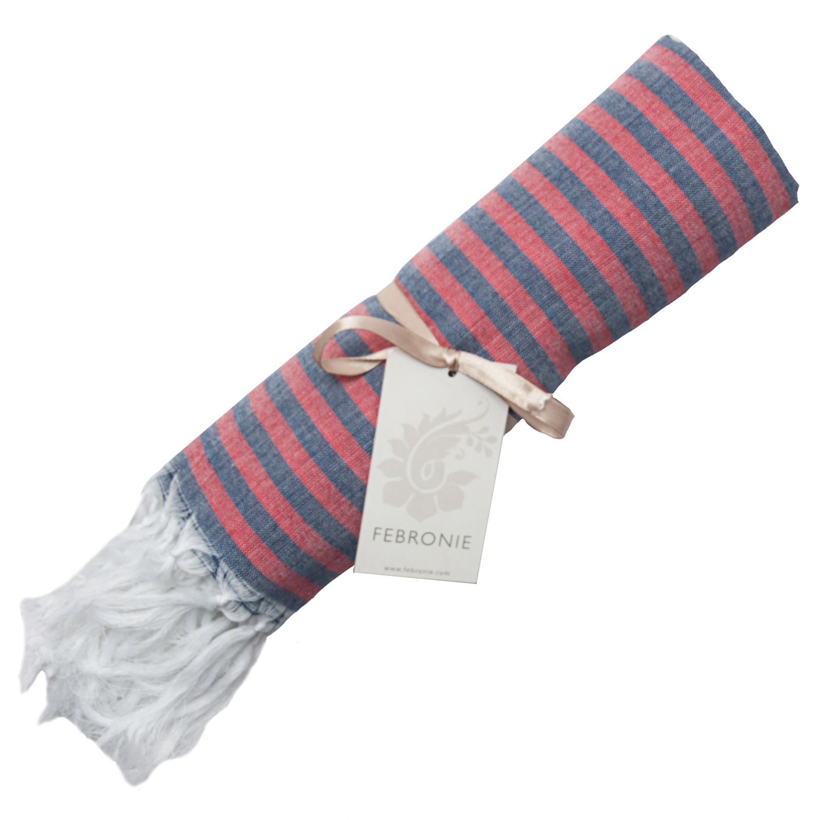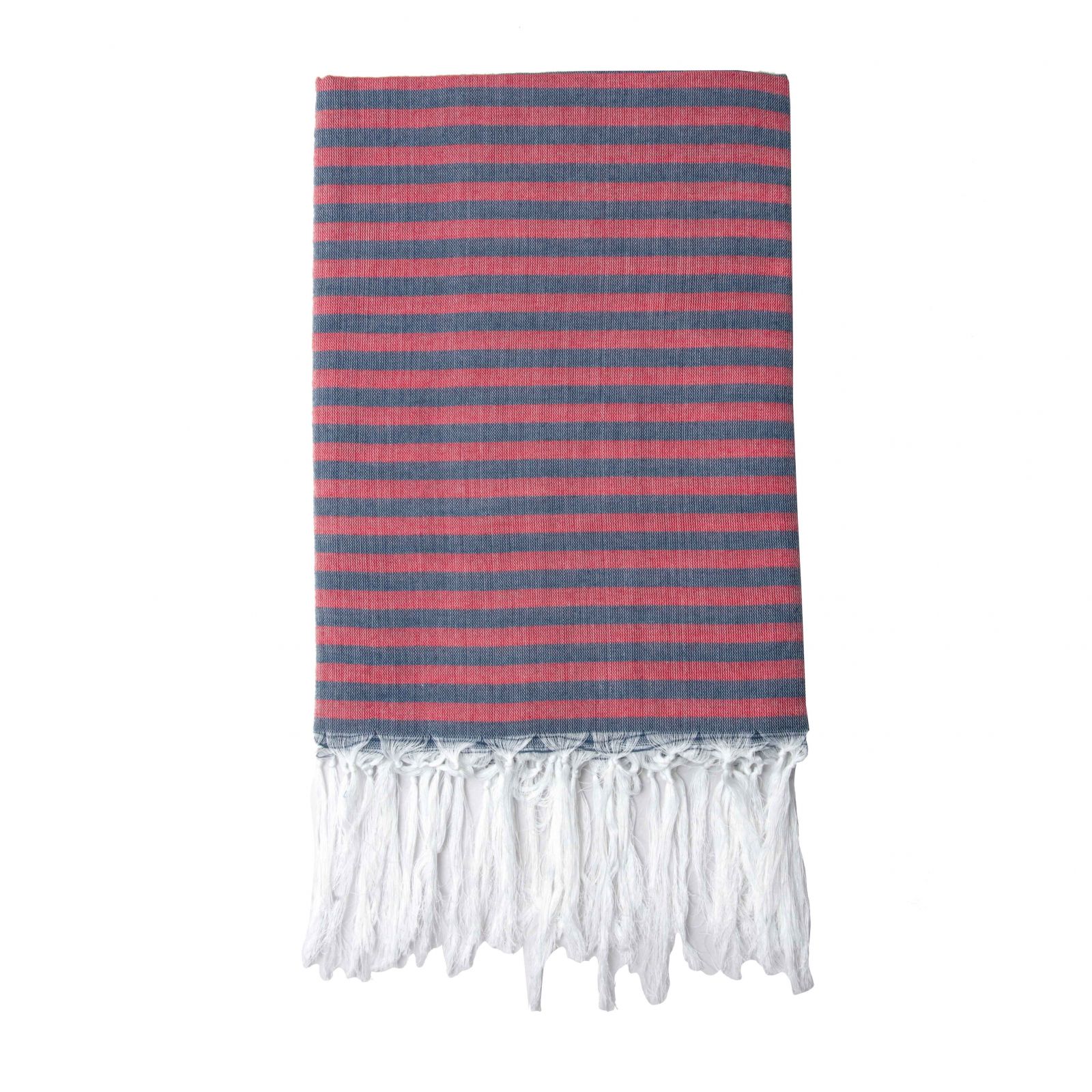 Titre : Fouta Bora Bora - Bleu Jean / Rouge