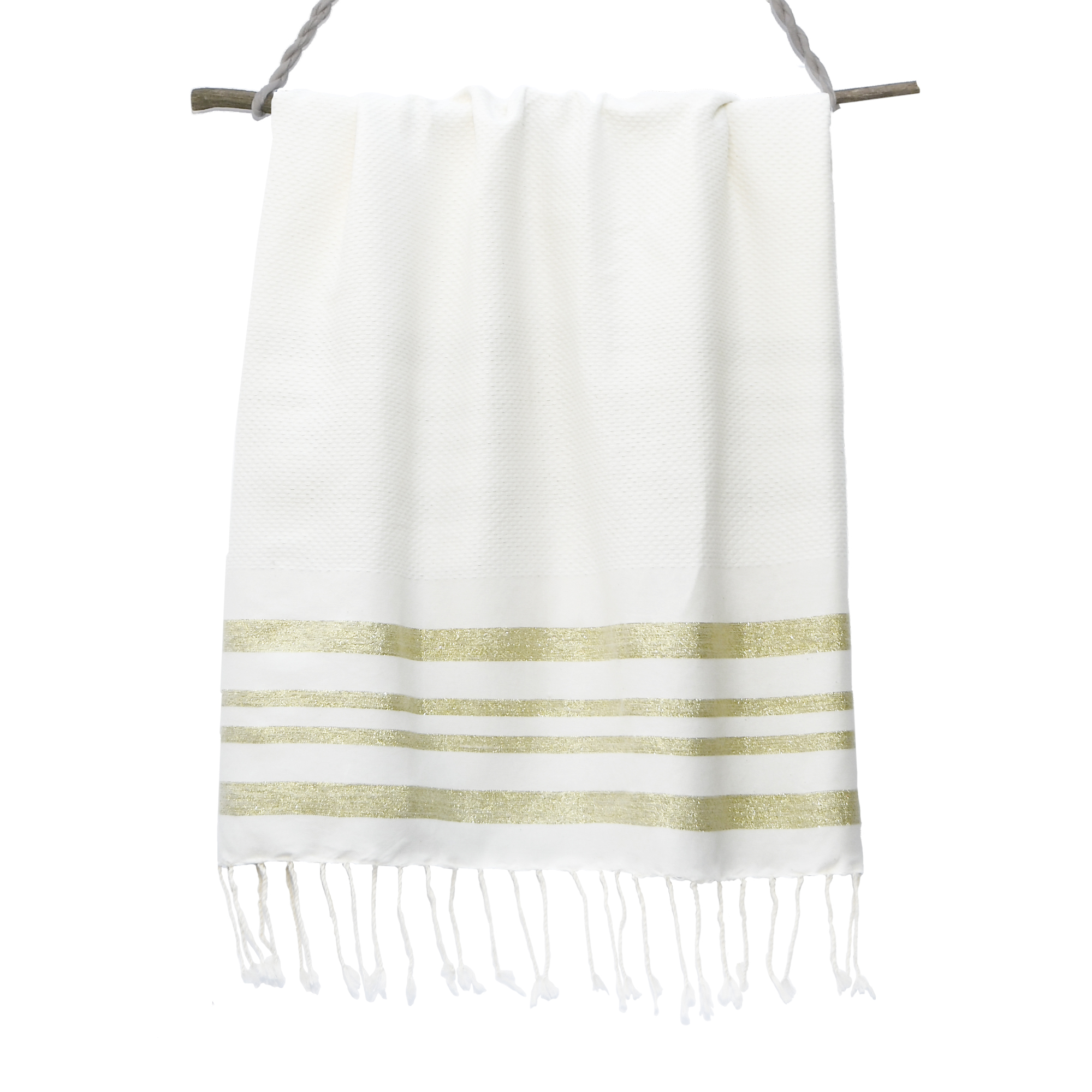Titre : Fouta Nid d'abeille Hamptons - Lurex - Blanc / Or